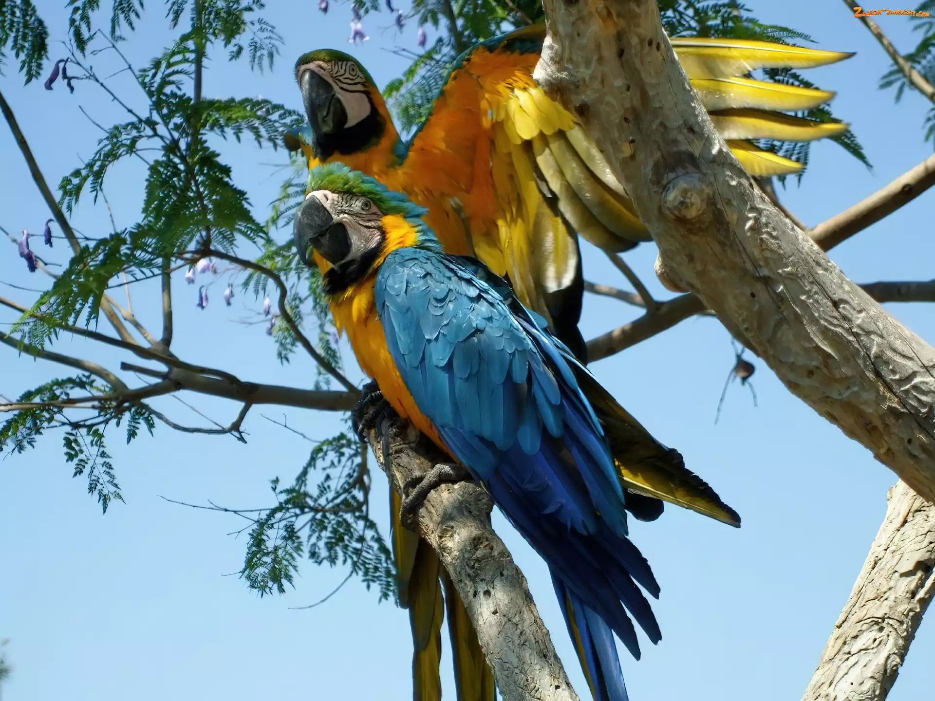 Zdjęcie: Dwie, Papugi, Drzewo, Ara