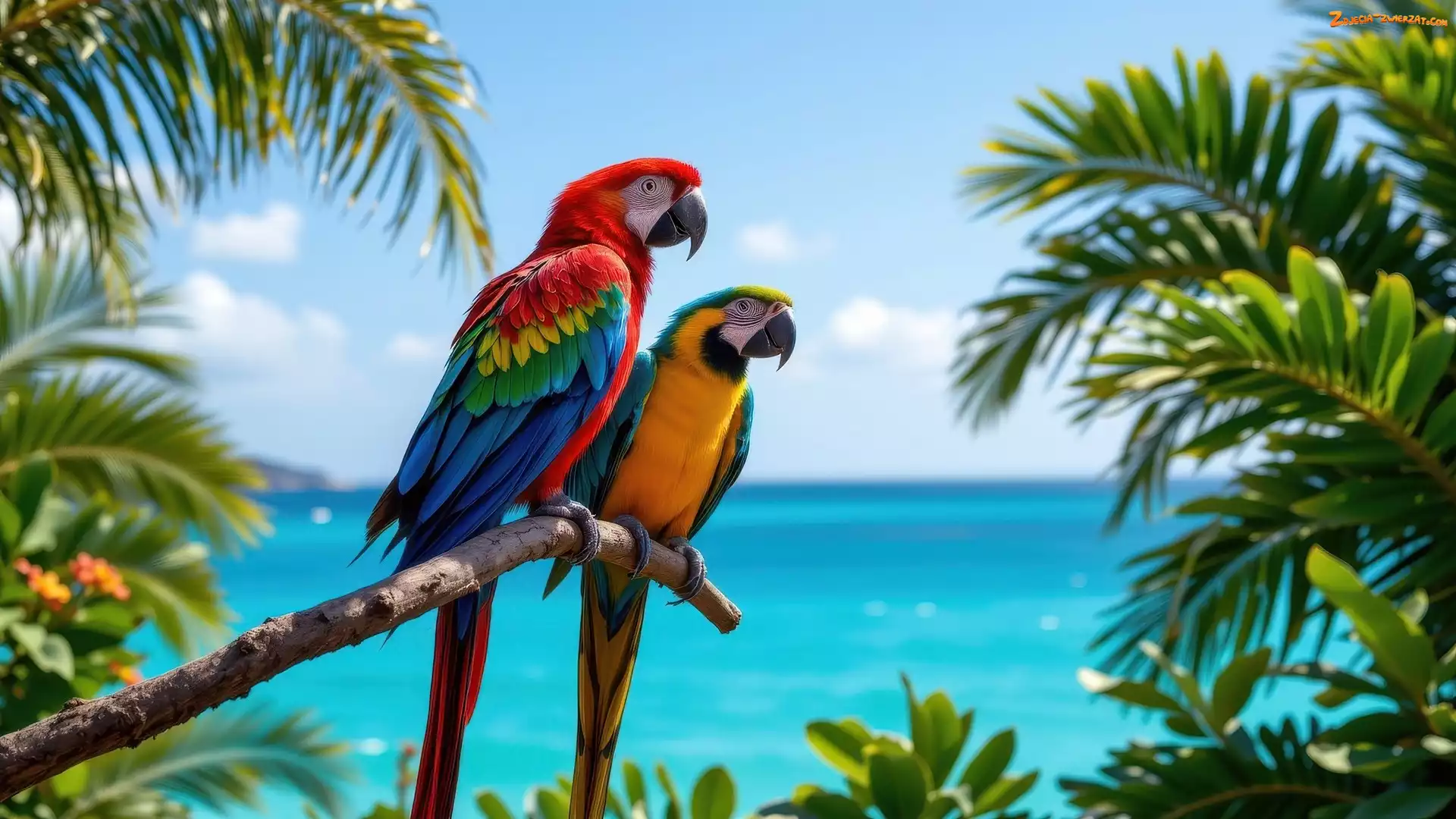 Morze, Ary, Dwie, Papugi, Konar, Rośliny