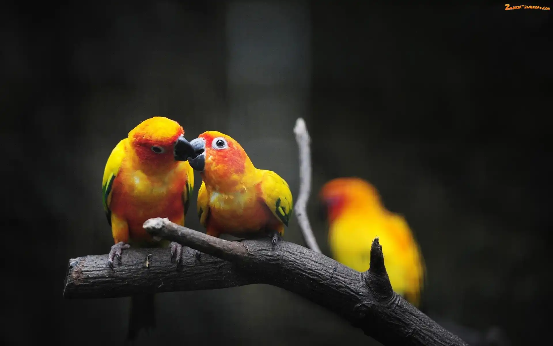 Żółte, Całus, Papużki, Konar