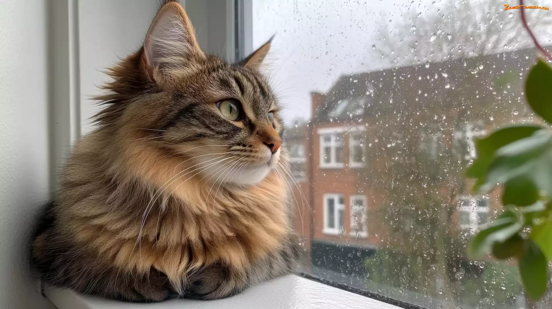 Zdjęcie: Kot, Okno, Deszcz, Parapet