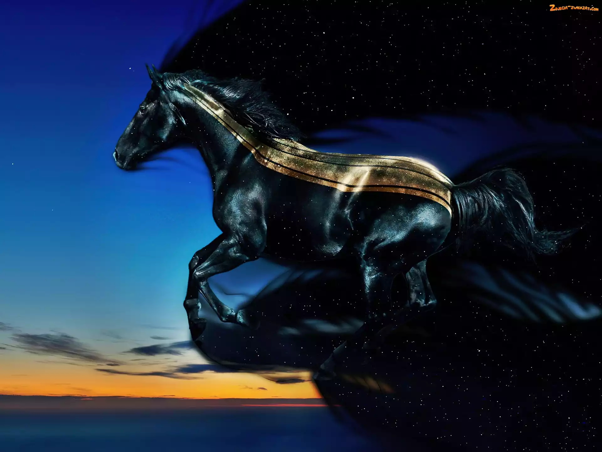 Zdjęcie: Paski, Złote, Koń, Czarny, Niebo