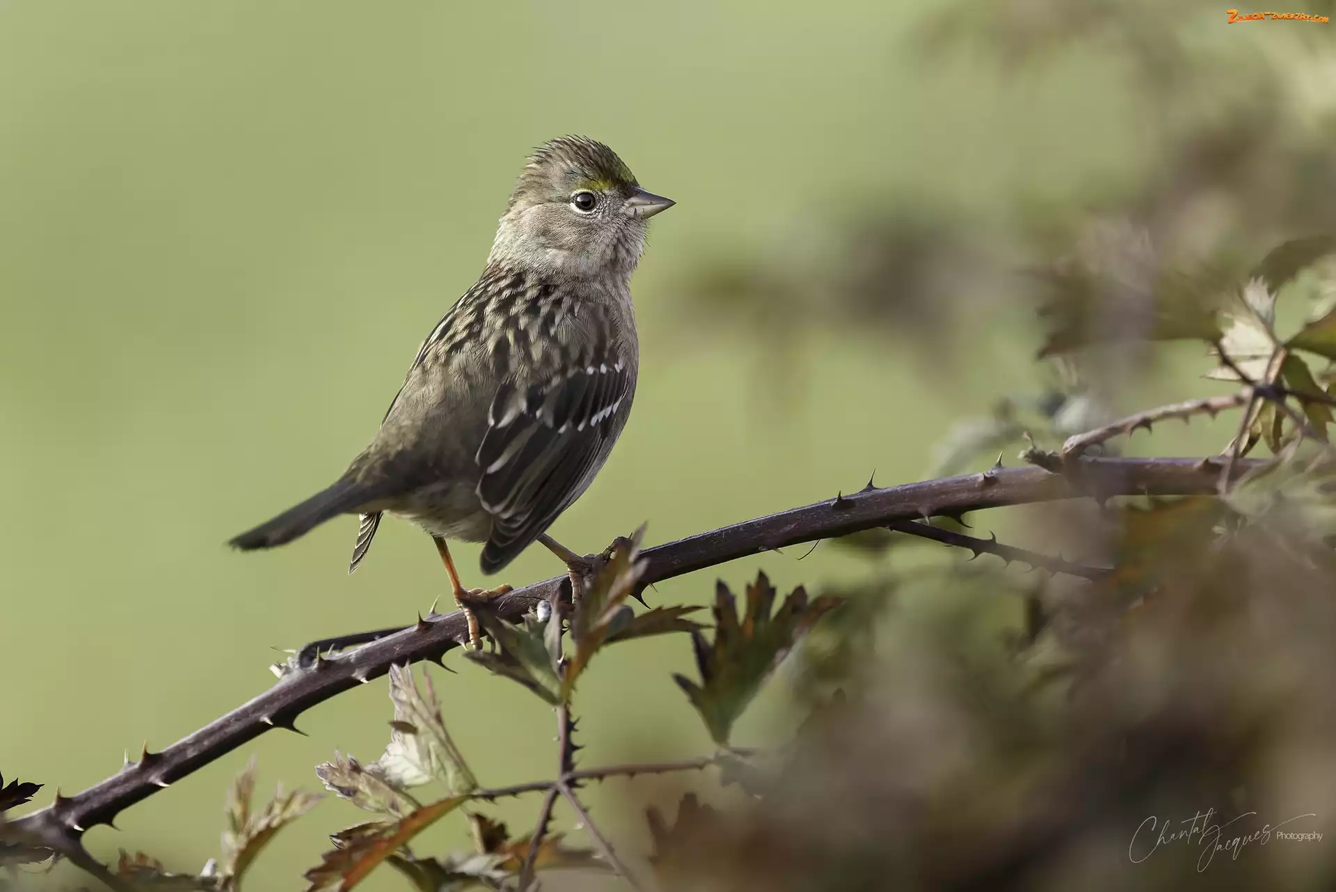 Zdjęcie: Ptak, Pasówka złotołbista, Liście, Gałązka