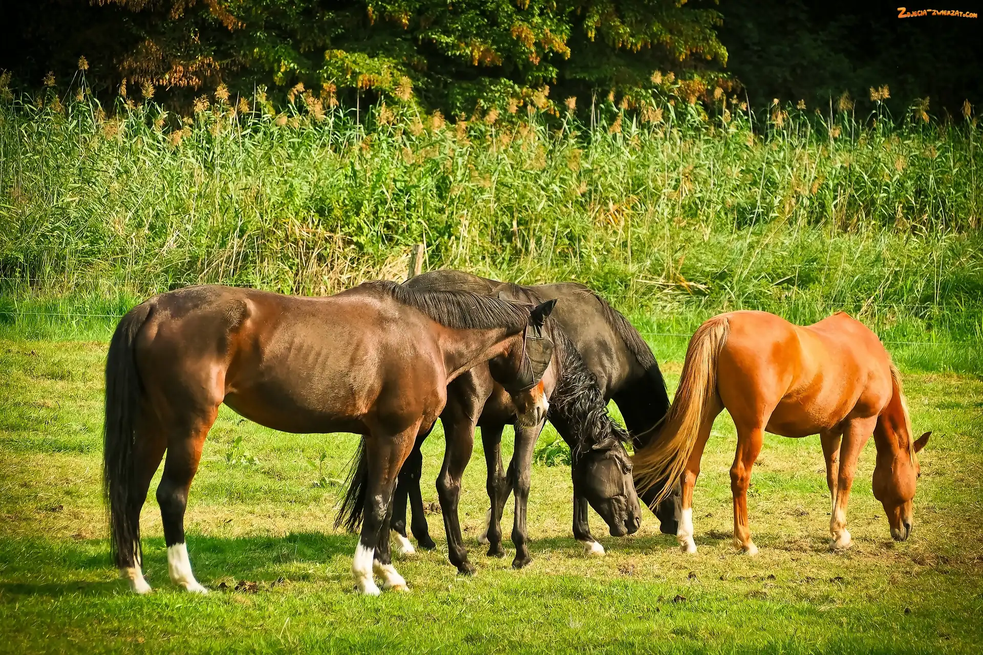 Zdjęcie: Pastwisko, Drzewa, Konie, Trawy
