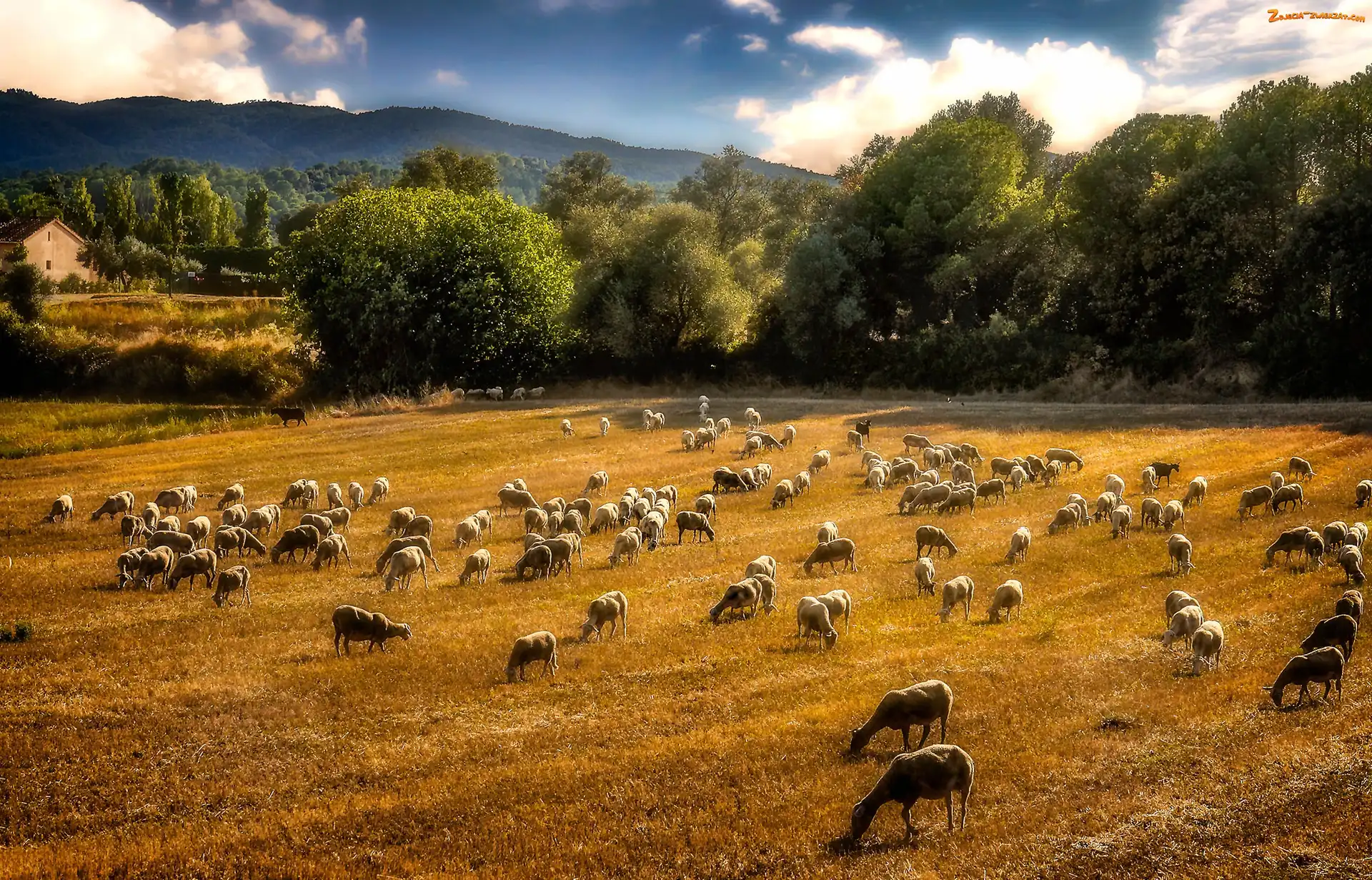Pastwisko, Barany, Las, Góry, Owce, Łąka