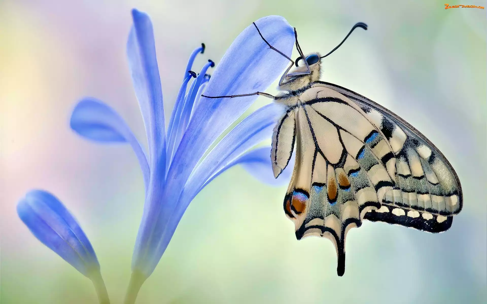 Zdjęcie: Motyl, Paź królowej, Niebieski, Kwiat
