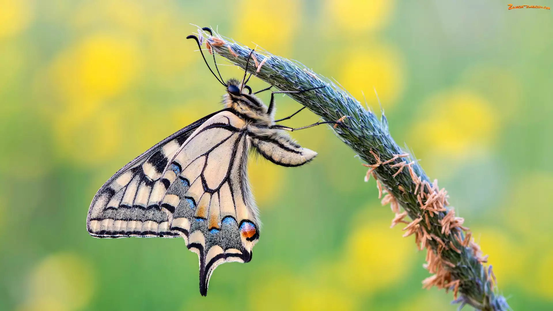 Zdjęcie: Motyl, Paź królowej, Makro, Źdźbło