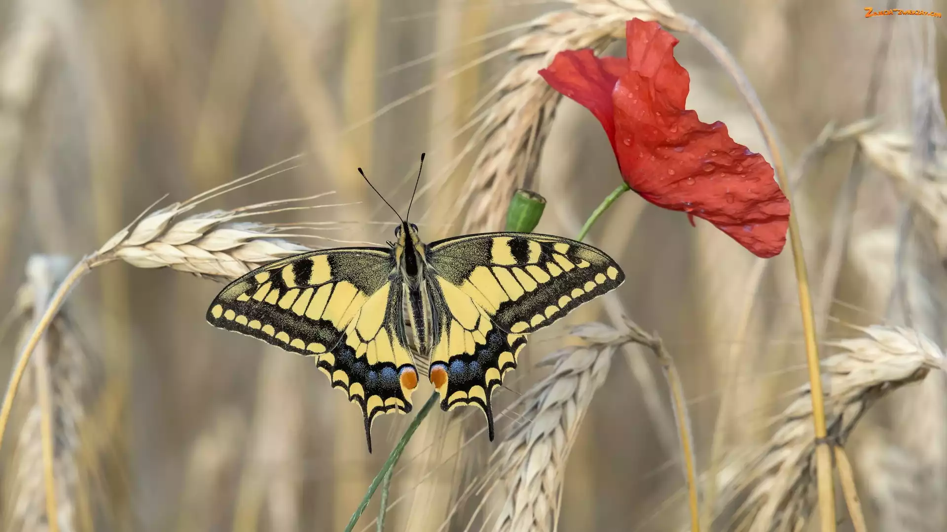 Zdjęcie: Paź królowej, Motyl, Kłosy, Zboże, Mak