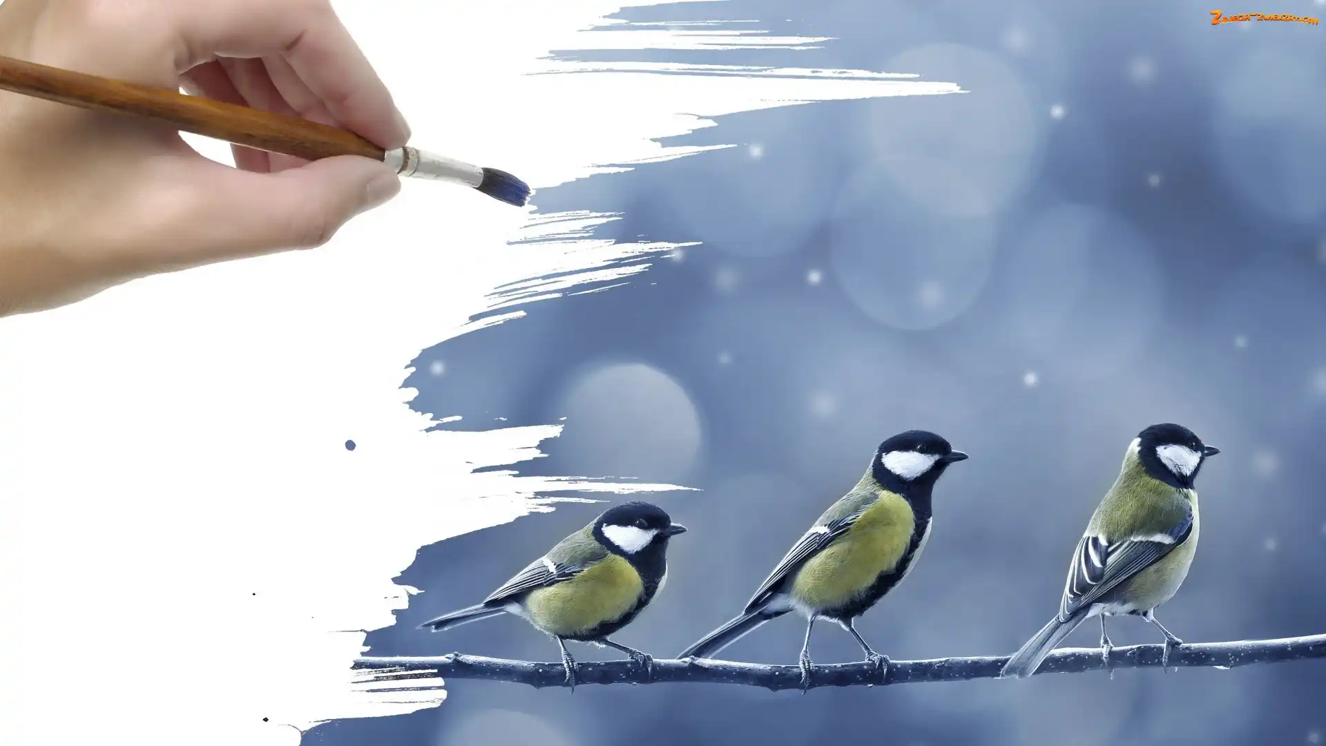 Zdjęcie: Pędzel, Rysunek, Sikorki, Malowanie