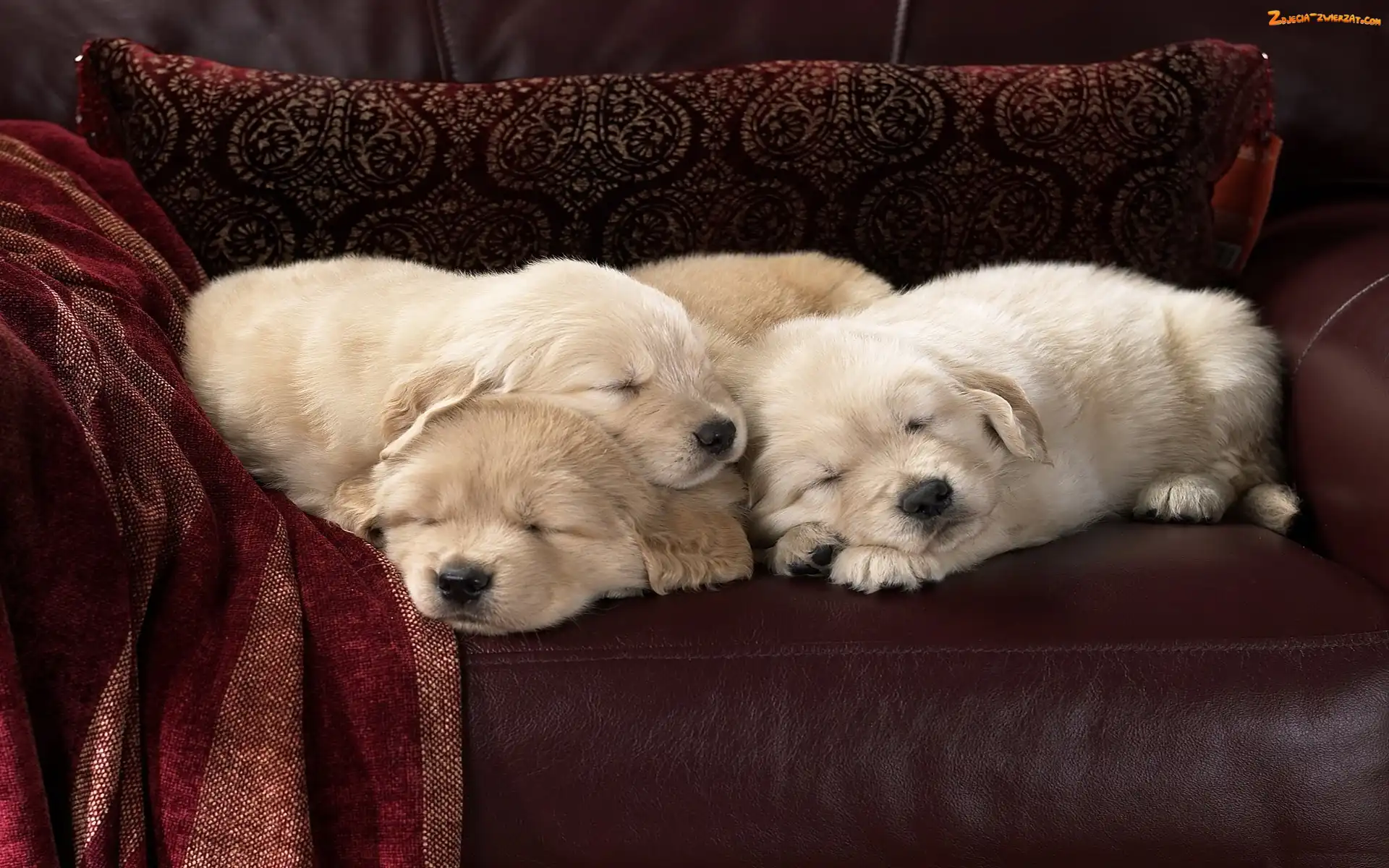 Zdjęcie: Psy, Golden retrievery, Śpiące, Szczeniaki
