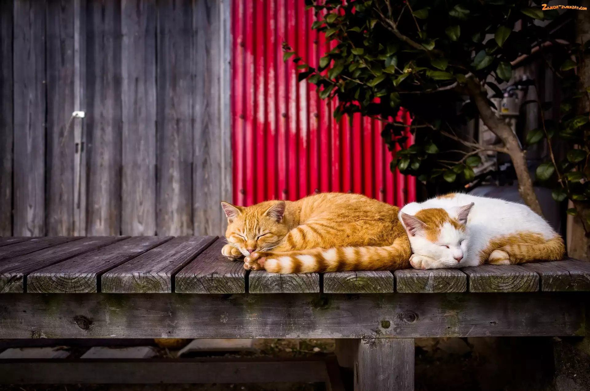Deski, Śpiące, Dwa, Rudy, Rudo-biały, Leżące, Koty