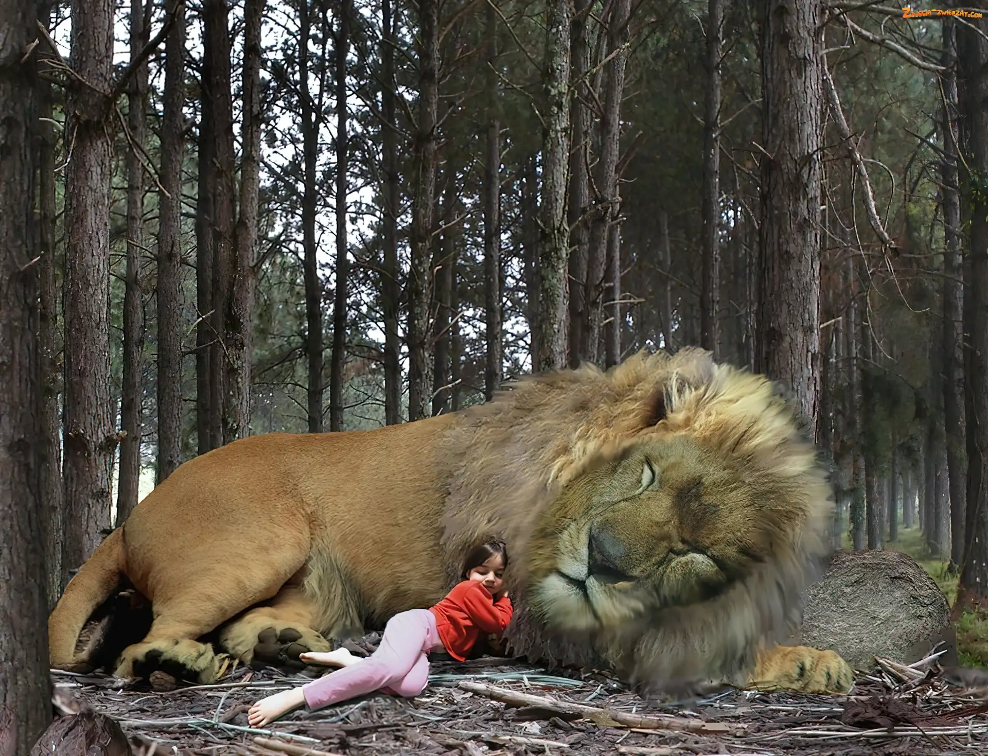 Zdjęcie: Dziewczynka, Śpiący, Lew
