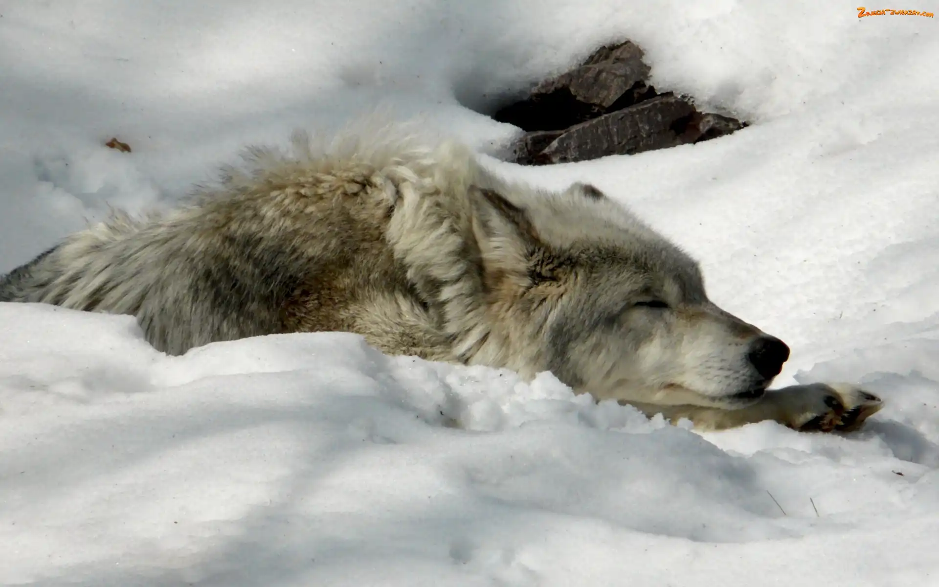 Zdjęcie: Śnieg, Śpiący, Wilk