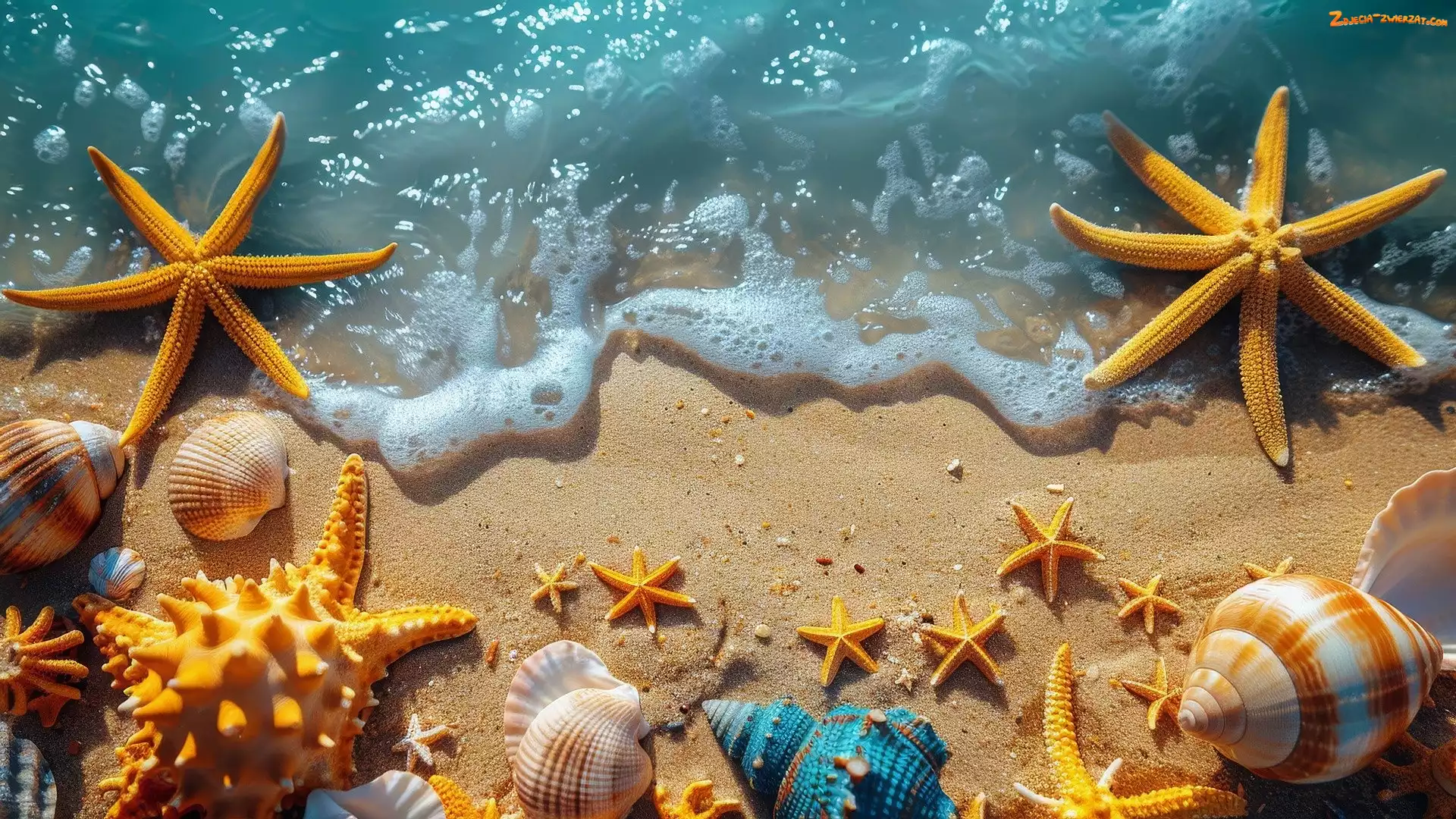 Muszle, Piasek, Rozgwiazdy, Morze, Plaża