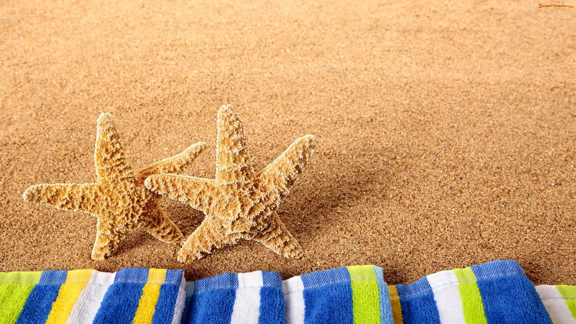 Zdjęcie: Rozgwiazdy, Piasek, Ręczniki