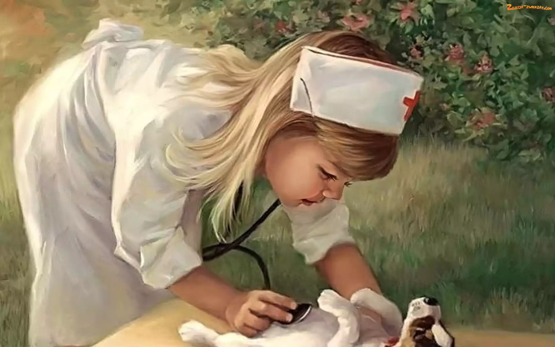 Pielęgniarka, Stetoskop, Pies, Dziewczyna, Szczeniak