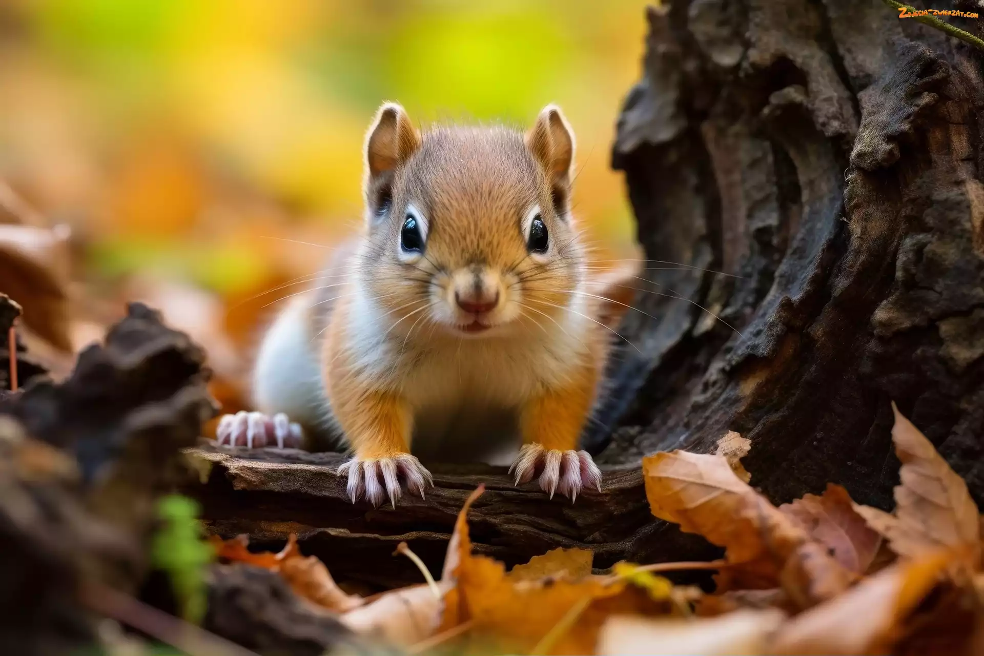 Liście, Pień, Jesień, Wiewiórka, Drzewo