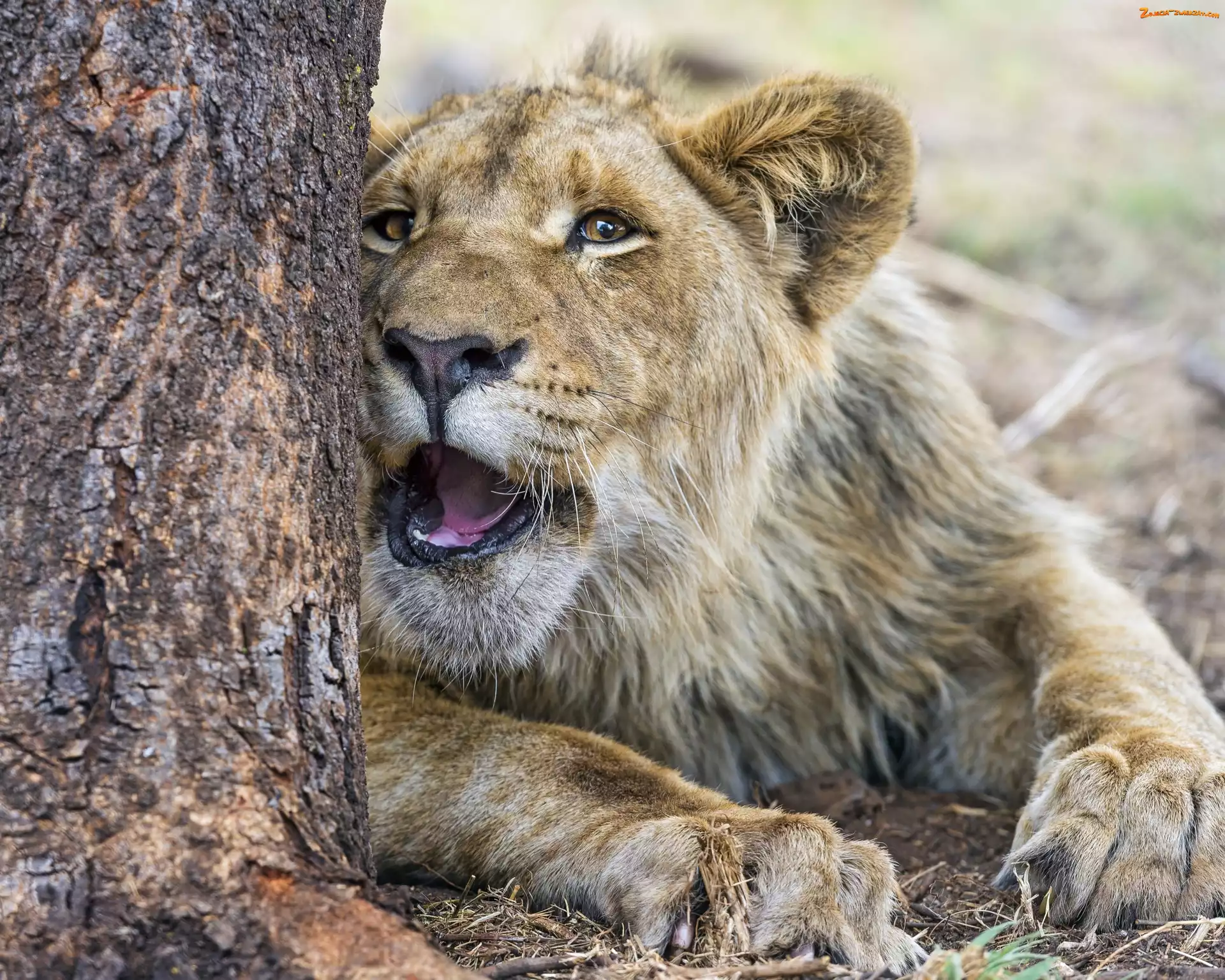 Zdjęcie: Pień, Tło, Lwica, Rozmyte