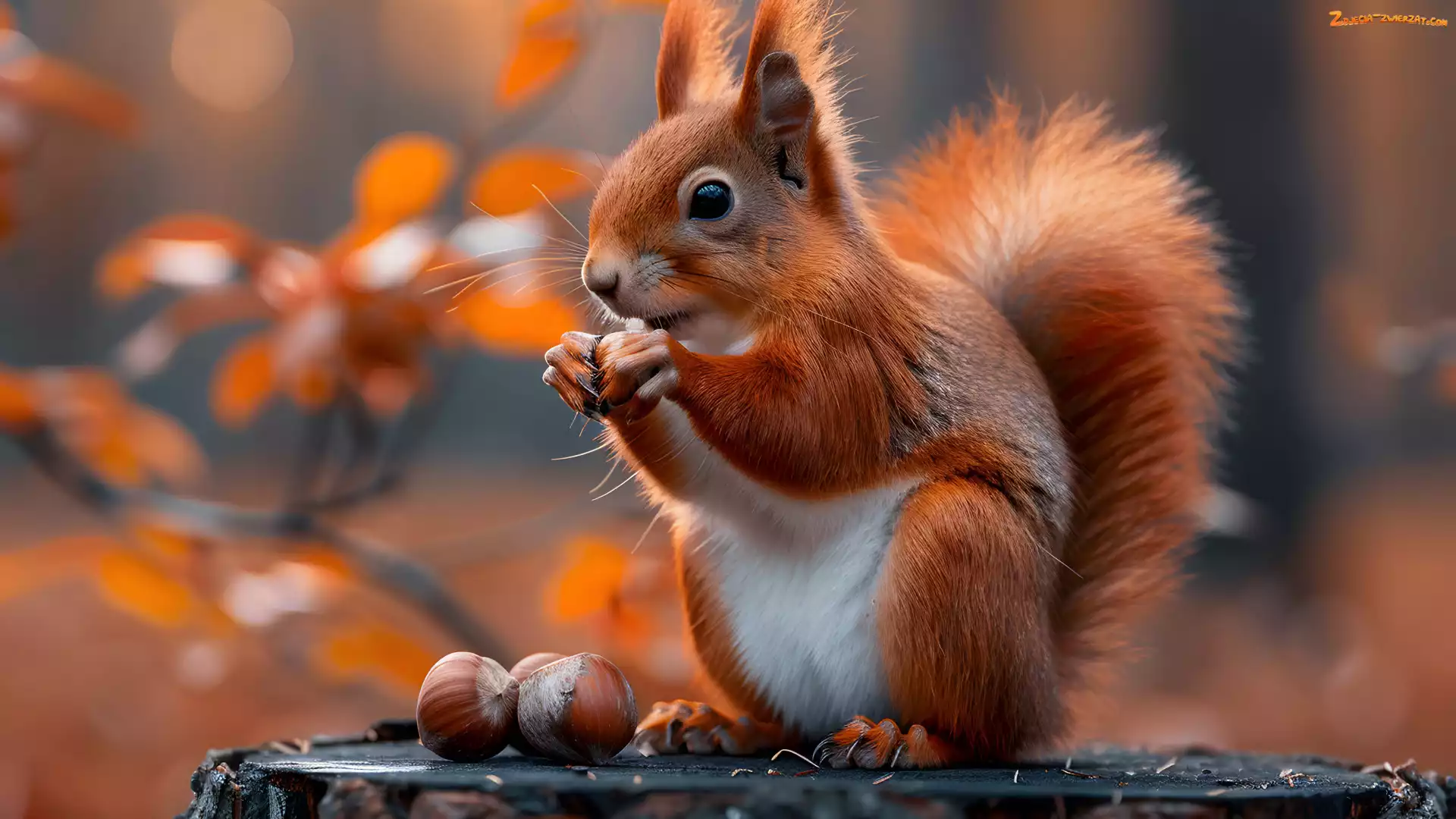 Zdjęcie: Orzechy laskowe, Wiewiórka, Pień