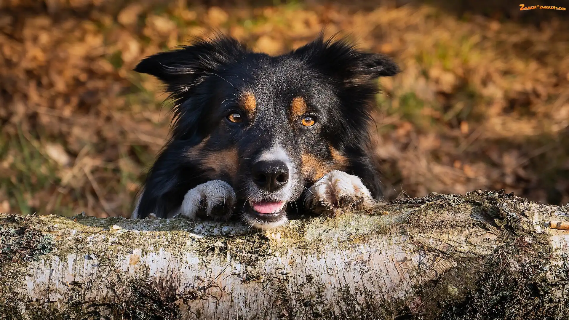 Zdjęcie: Pień, Łapki, Border collie, Pies, Mordka