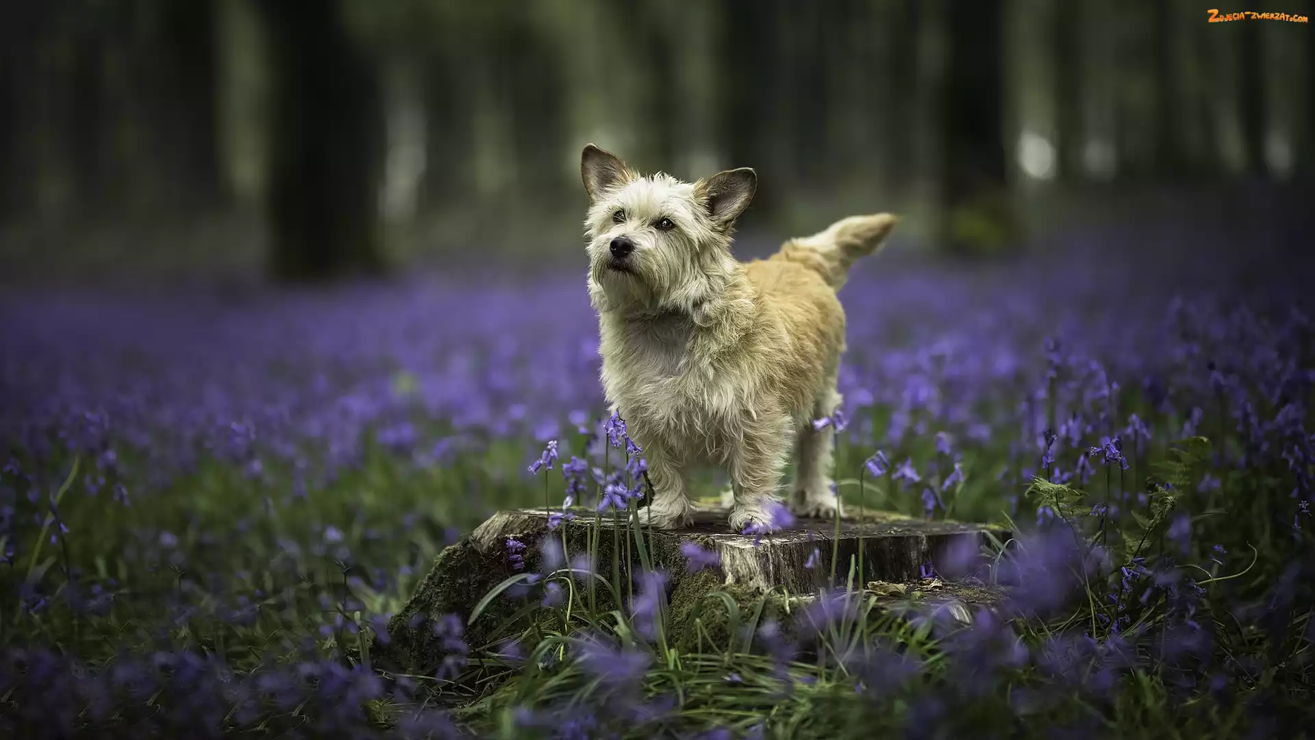 Pień, Kwiaty, Pies, Łąka