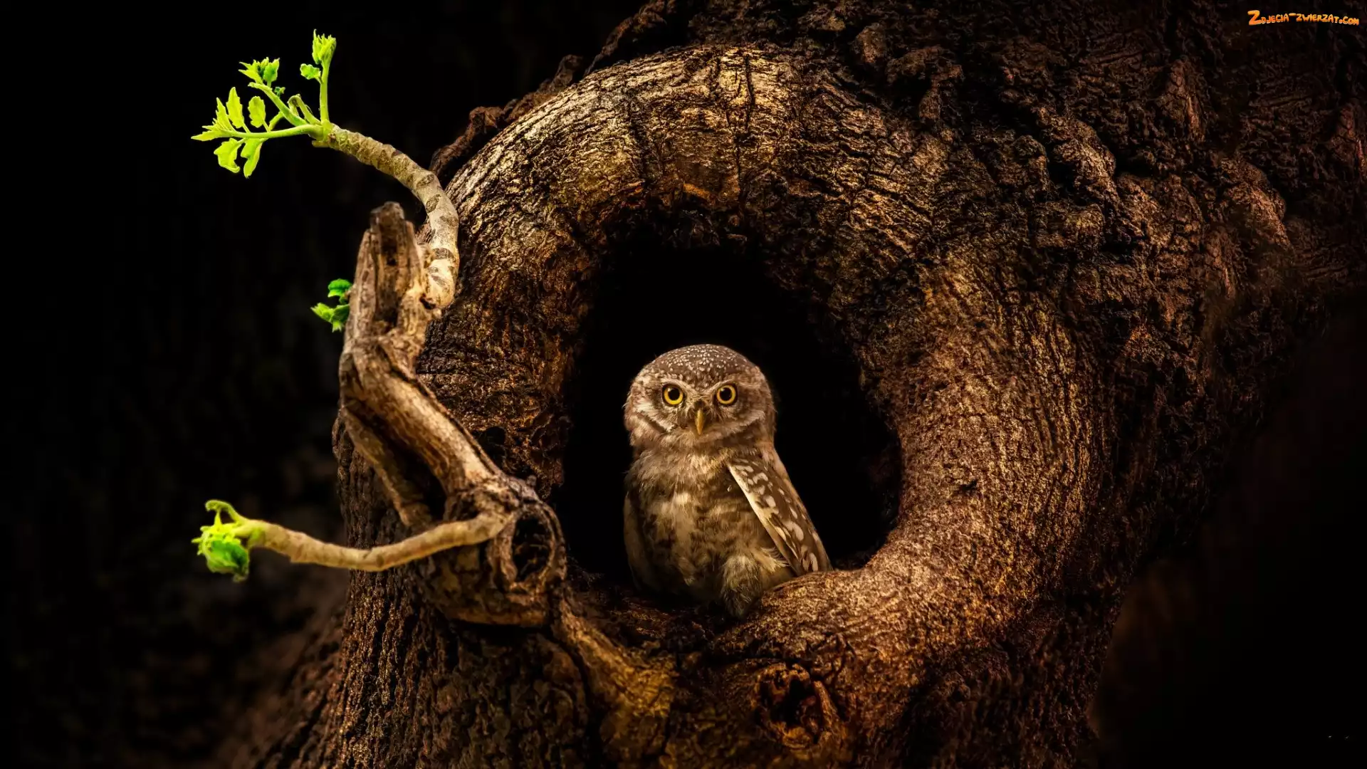 Dziupla, Sowa, Pójdźka, Pień, Liście, Drzewo, Gałąź