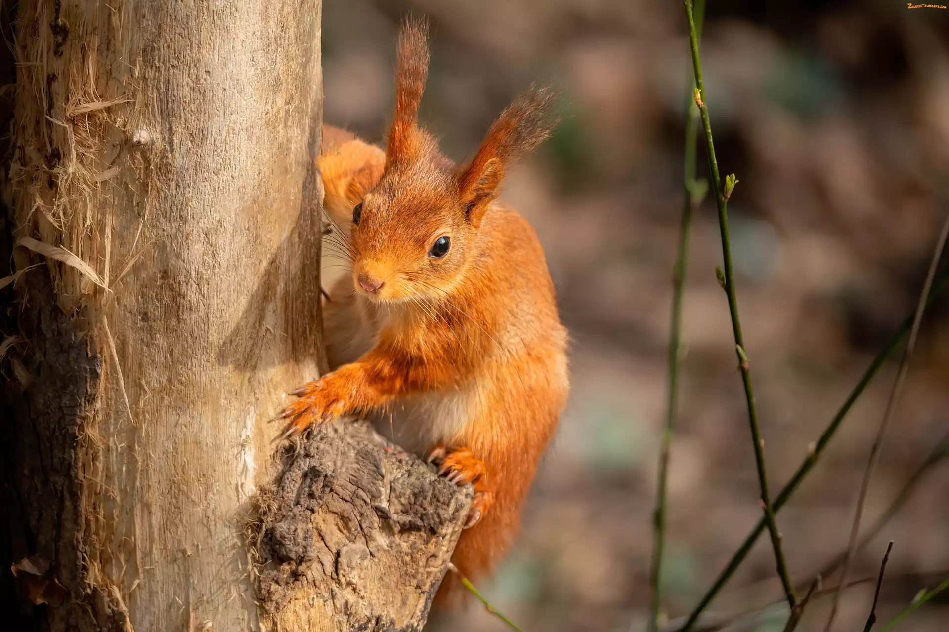 Zdjęcie: Ruda, Wiewiórka, Drzewo, Pień
