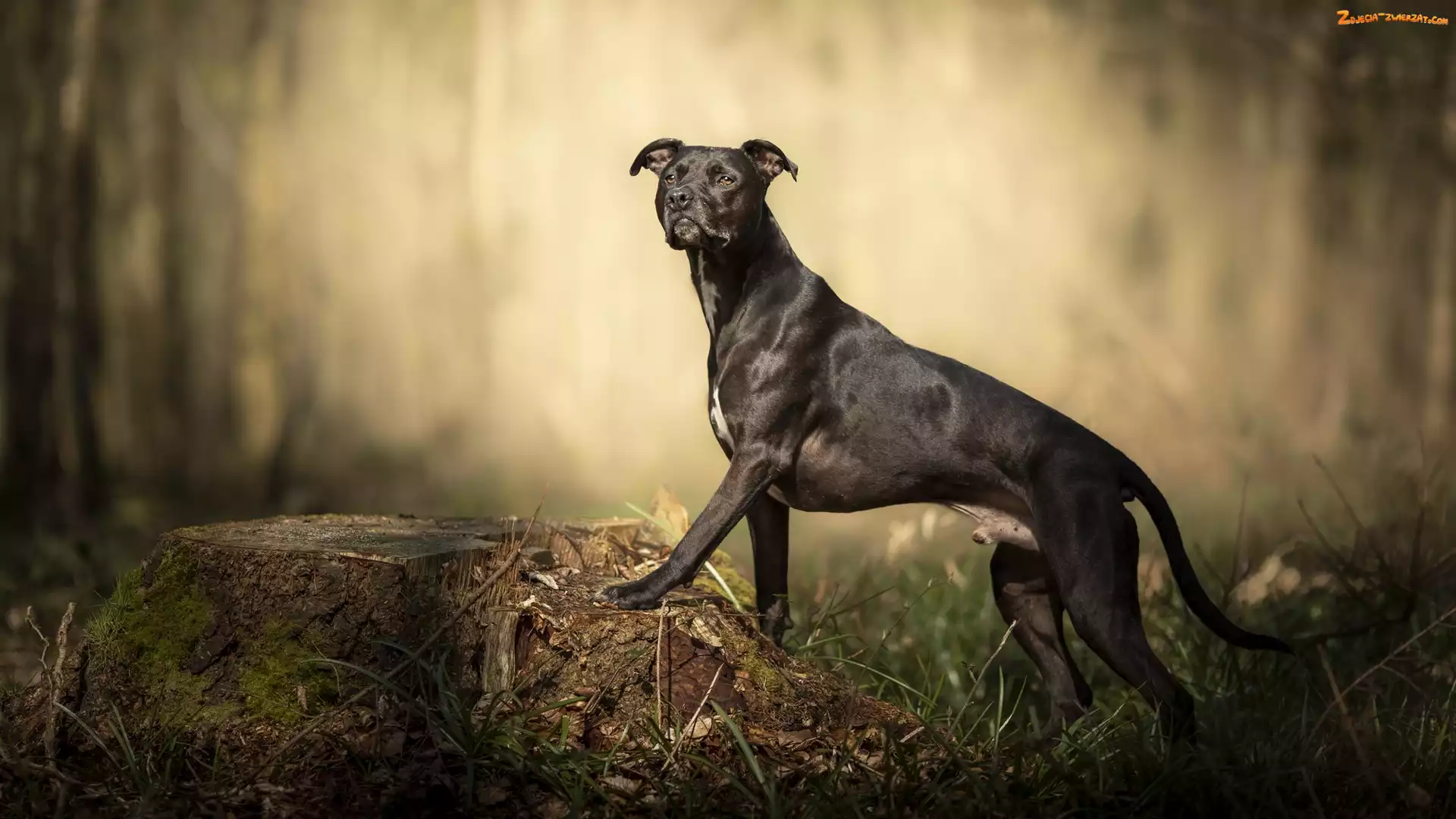 Zdjęcie: Trawa, Pień, Pit Bull Terrier, Pies, Sylwetka