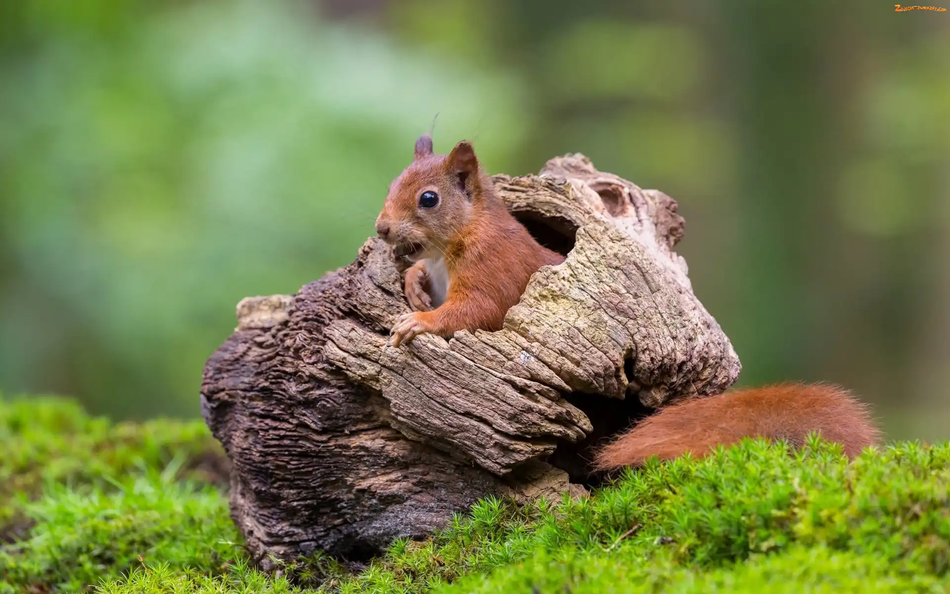 Zdjęcie: Pień, Trawa, Wiewiórka, Drzewa