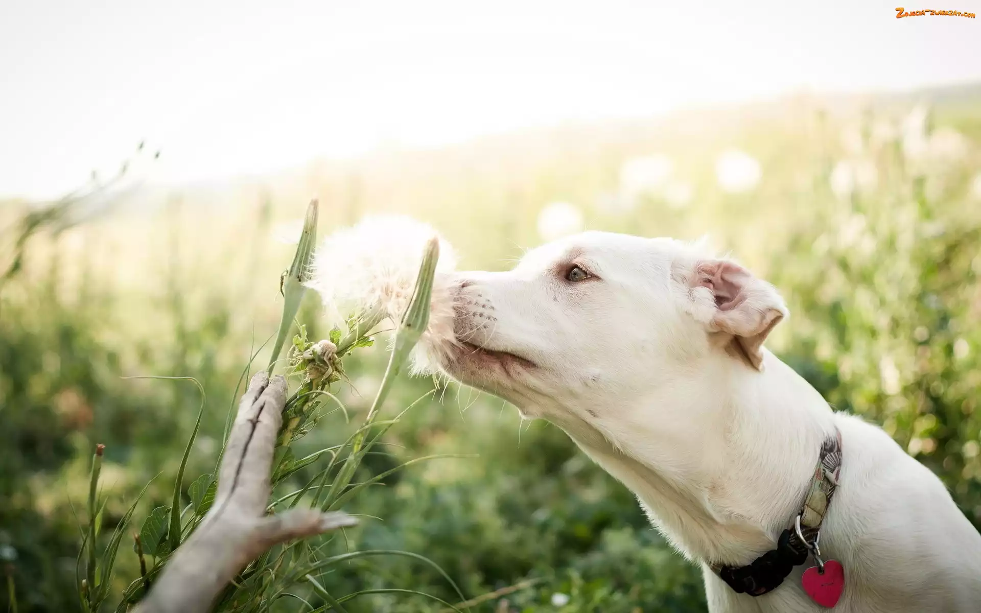 Zdjęcie: Pies, Dmuchawiec, Biały, Obroża