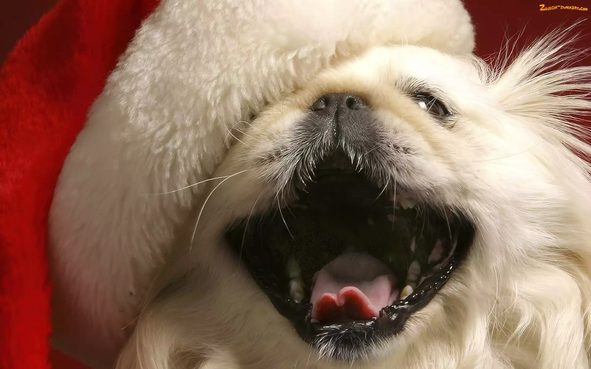 Zdjęcie: Pekińczyk, Mikołaja, Pies, Biały, Czapka
