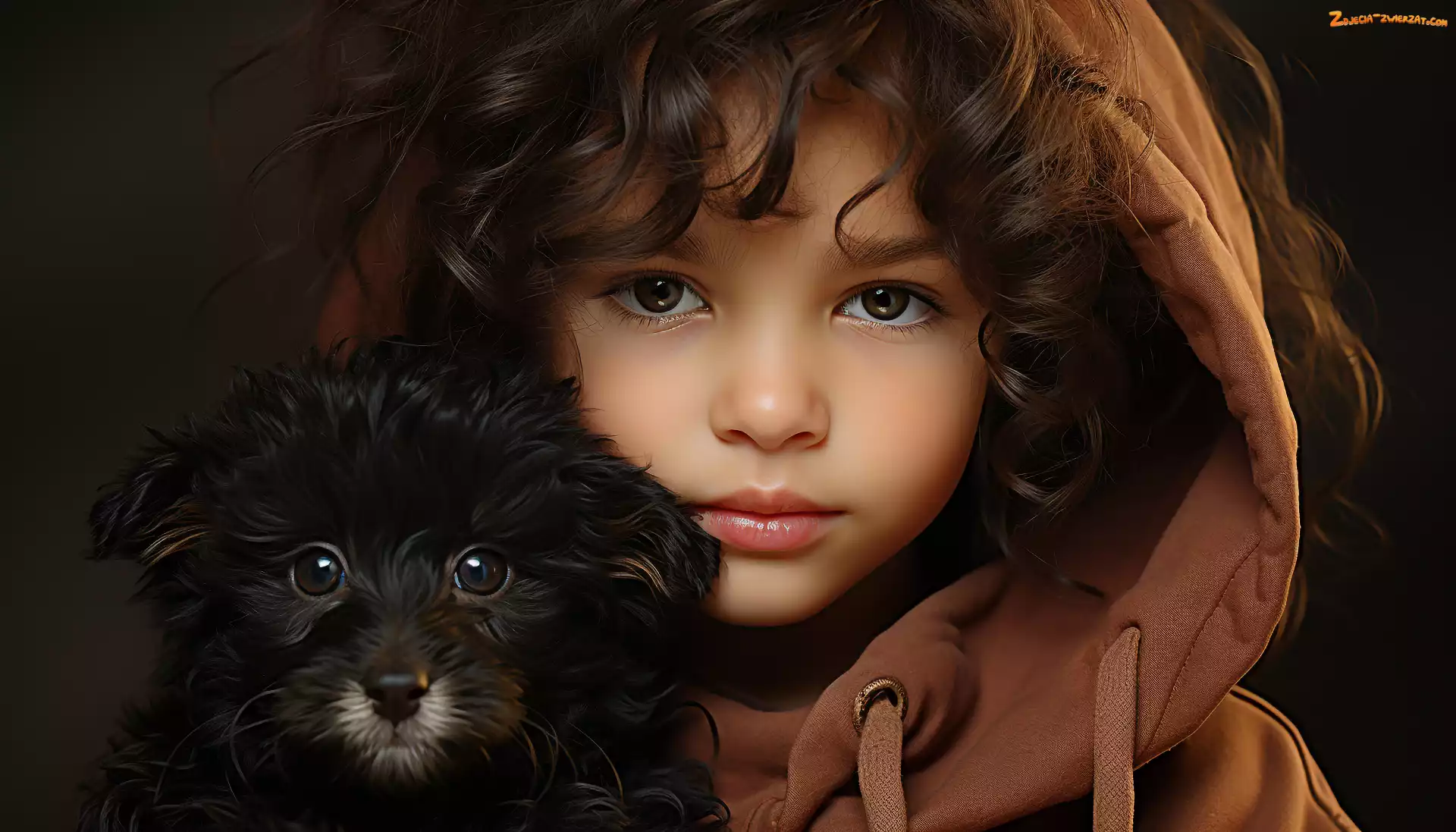 Szczeniak, Dziecko, Bluza, Pies, Grafika, Kaptur, Spojrzenie