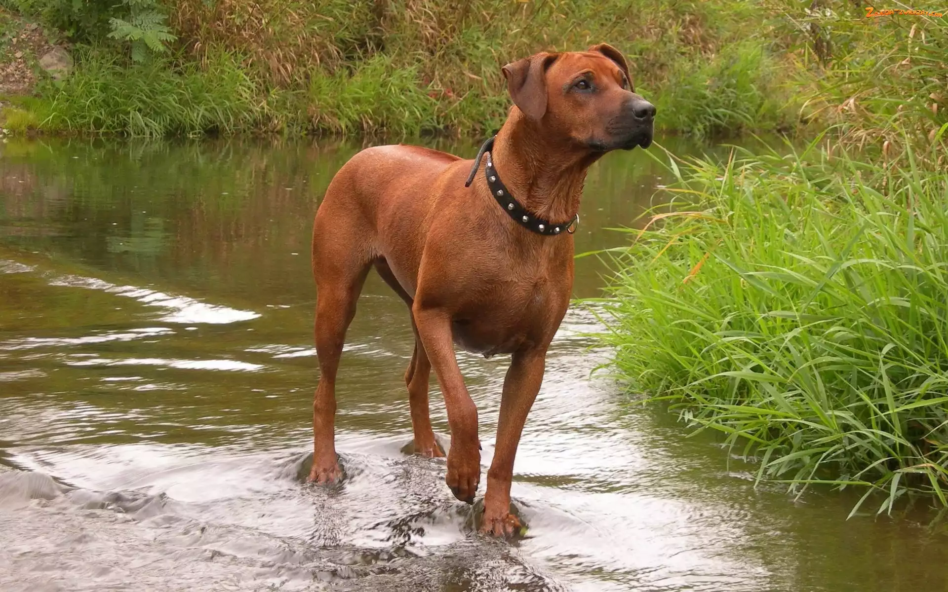 Zdjęcie: Pies, Strumień, Brązowy, Szuwary