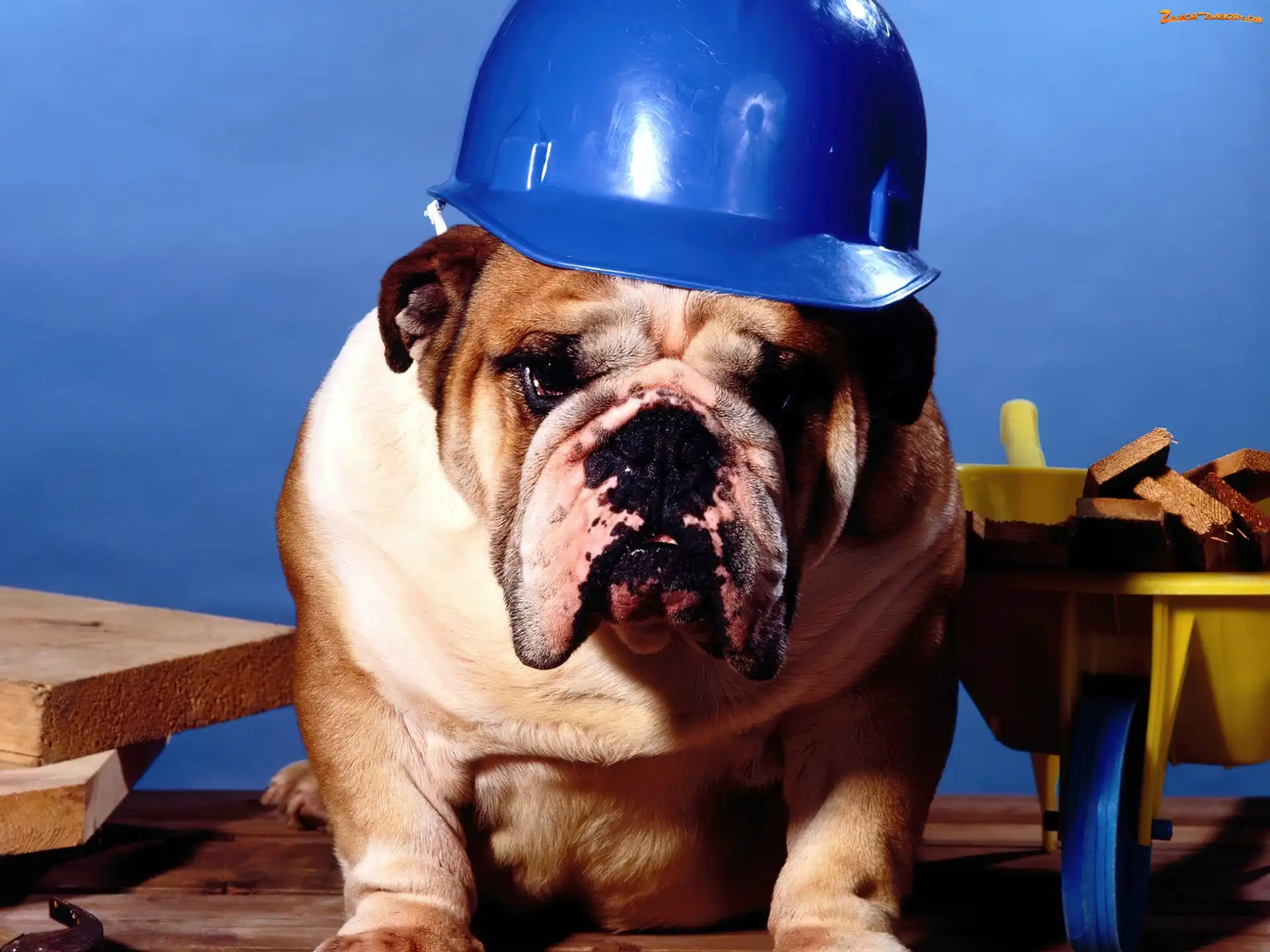 Zdjęcie: Kask, Buldog, Pies, Budowniczy