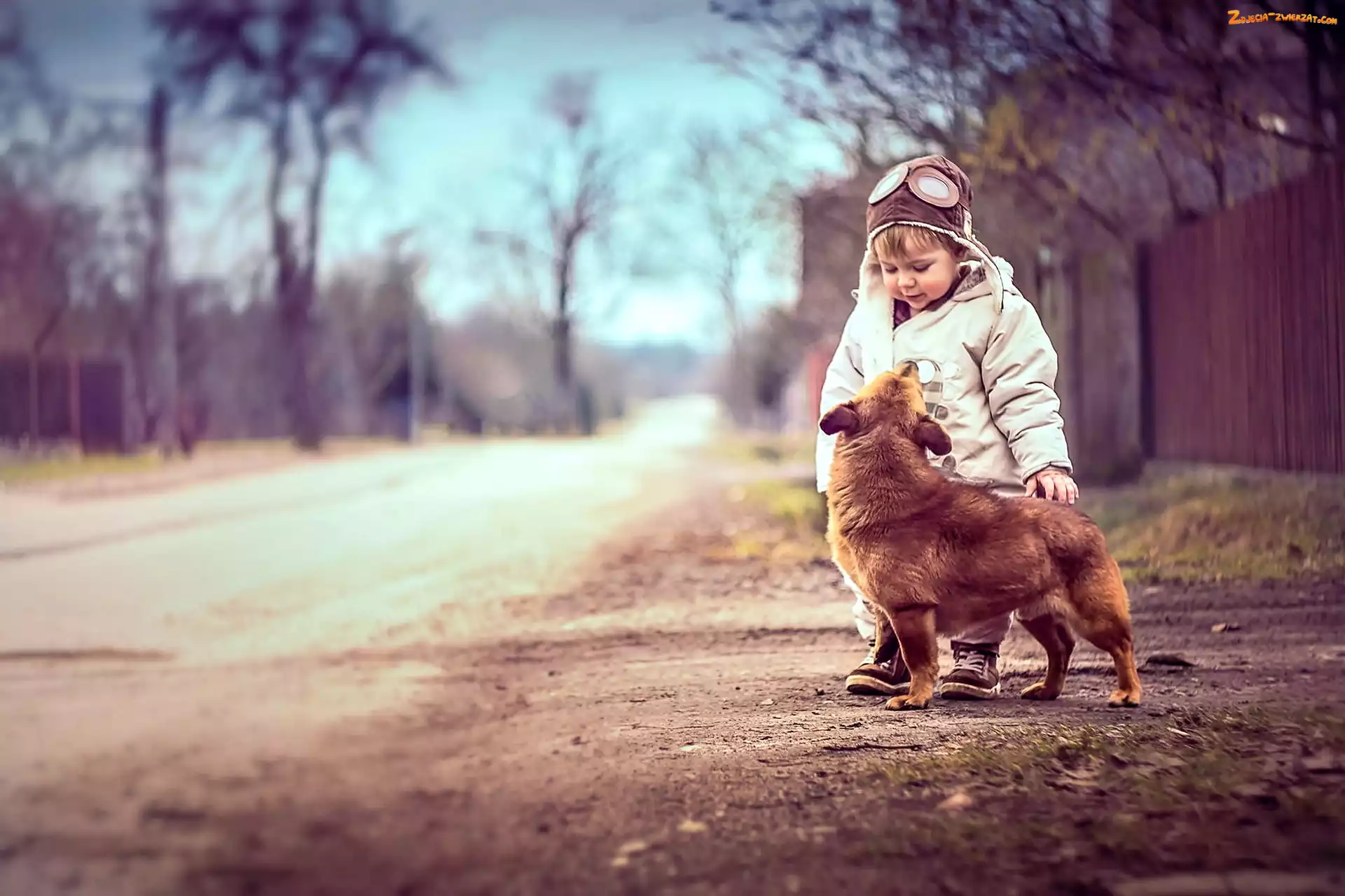 Zdjęcie: Pies, Droga, Chłopczyk, Kundelek