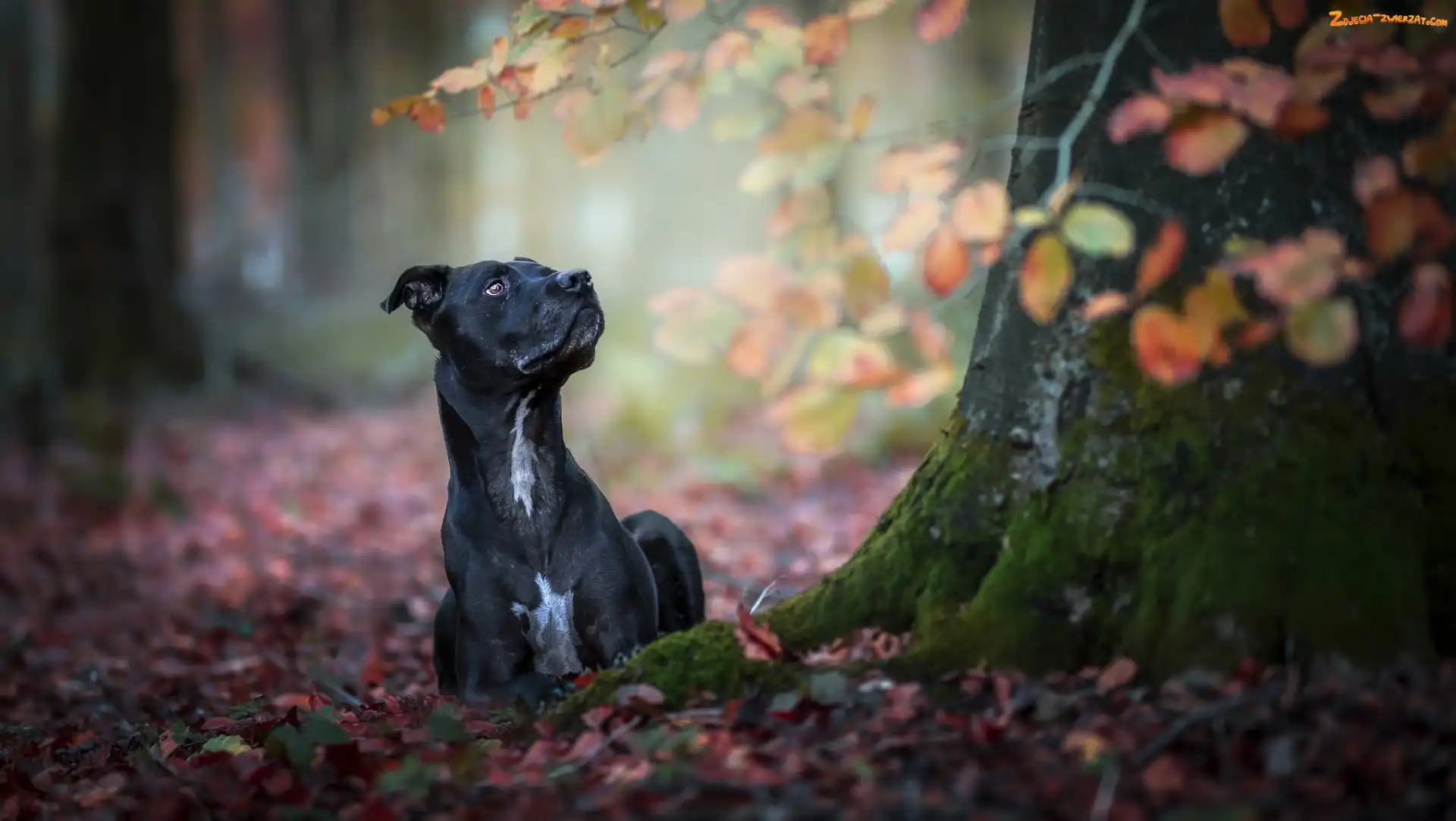 Zdjęcie: Pies, Liście, Czarny, Drzewo