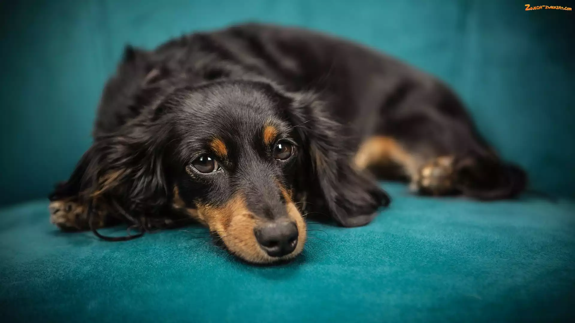Zdjęcie: Czarny, Pies, Tło, Zielone, Jamnik długowłosy, Podpalany