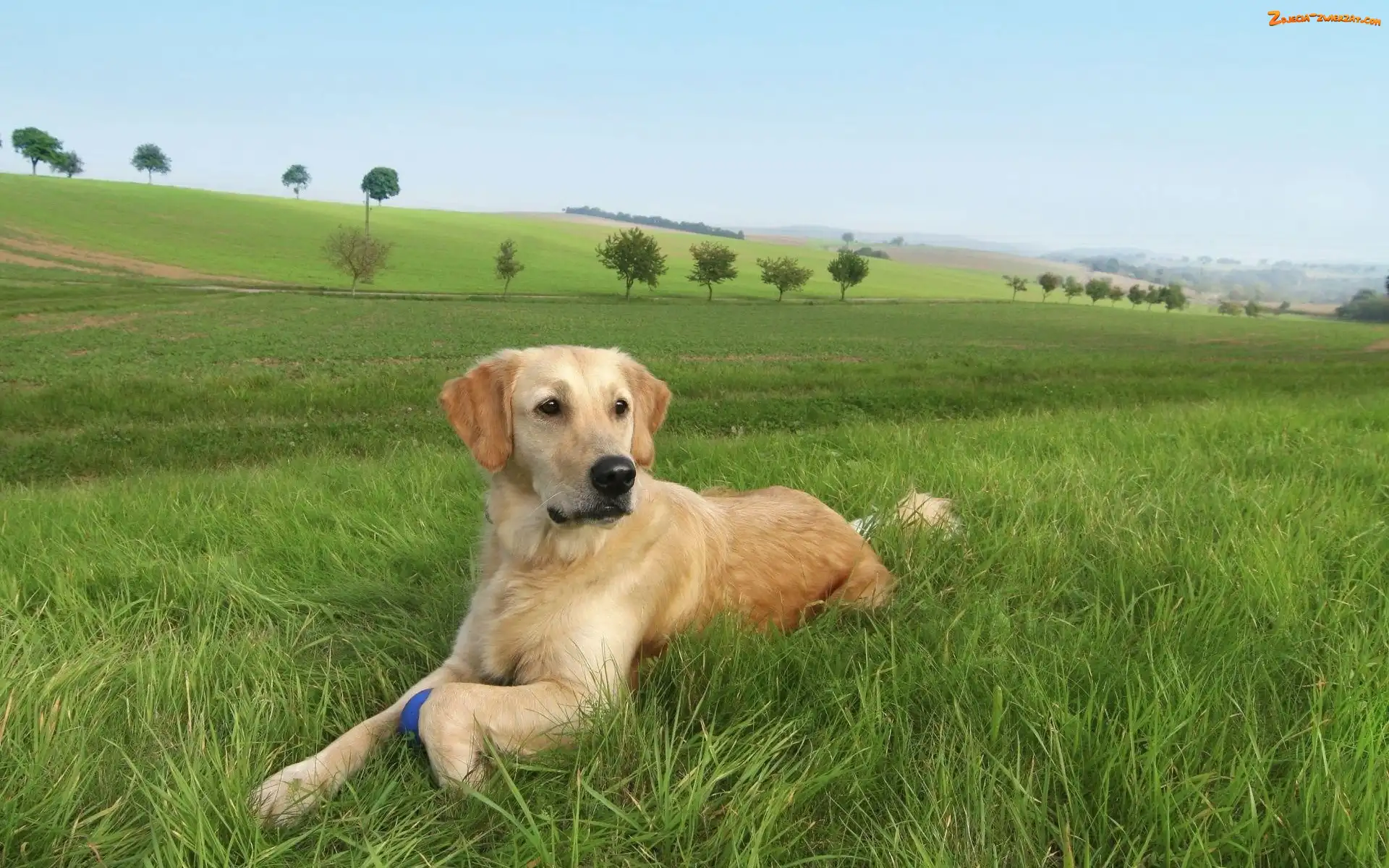 Zdjęcie: Łąka, Drzewa, Pies, Pola