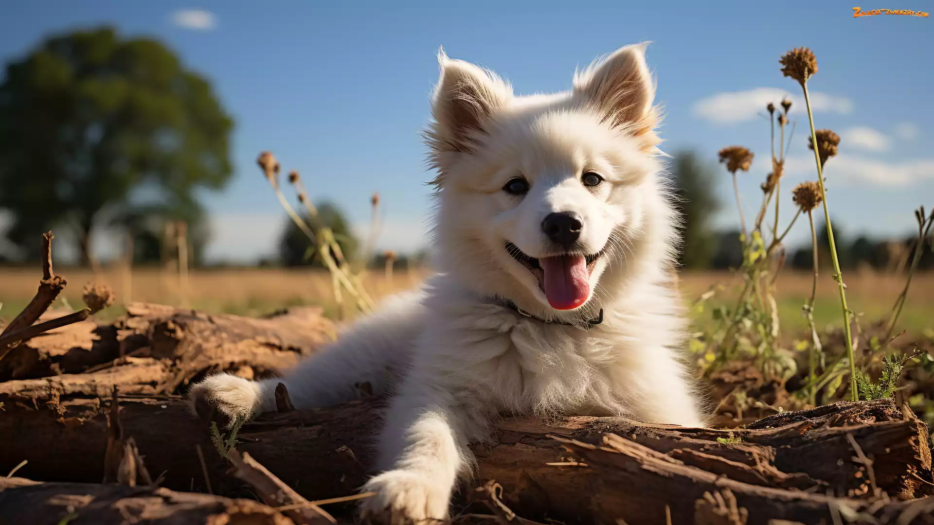 Zdjęcie: Leżący, Pies, Drzewo, Szczeniak, Biały
