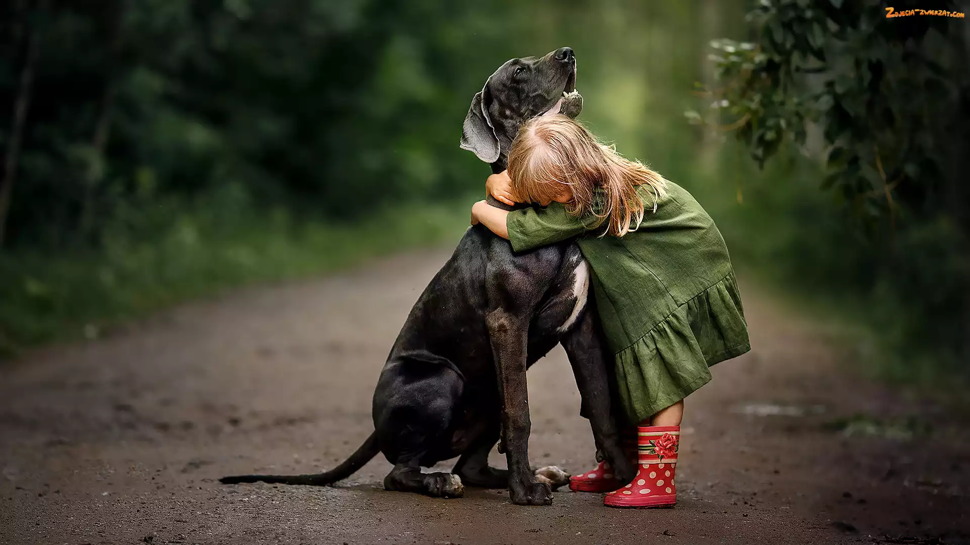 Zdjęcie: Pies, Sukienka, Dziewczynka, Dziecko, Zielona