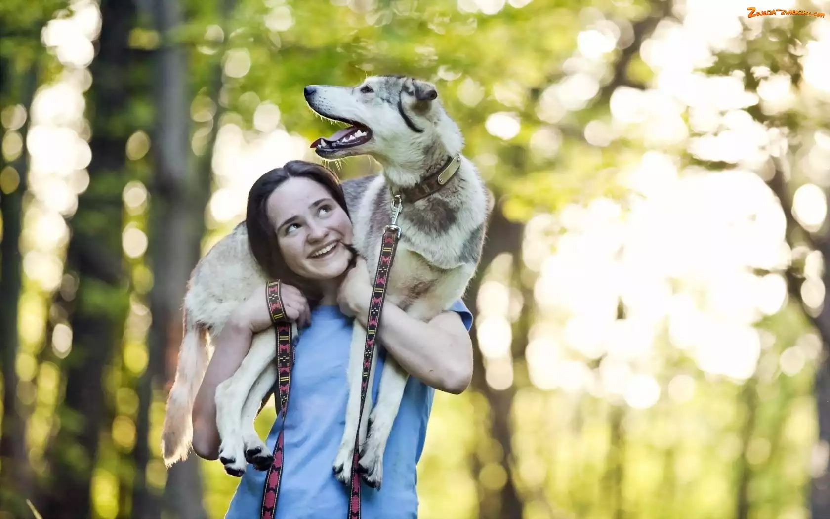 Zdjęcie: Pies, Park, Dziewczyna, Smycz