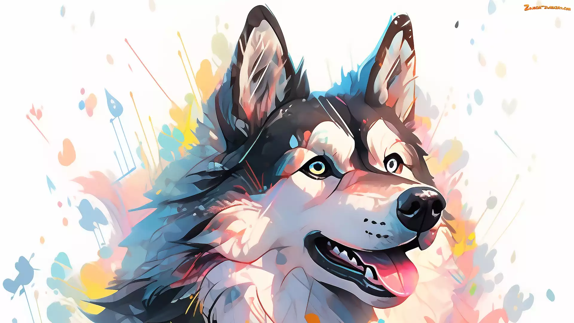 Zdjęcie: Grafika, Pies, Farba, Siberian husky