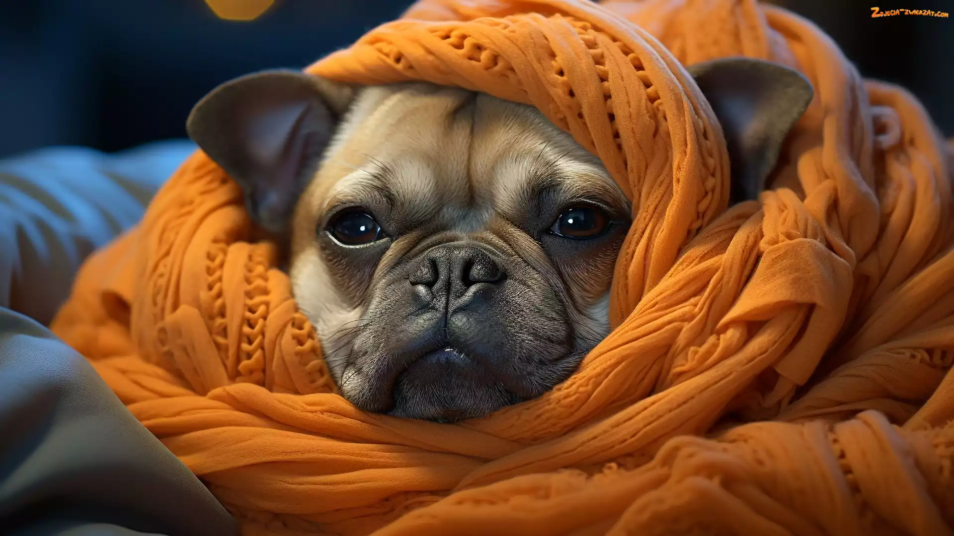 Zdjęcie: Szal, Pomarańczowy, Al, Pies, Buldog francuski