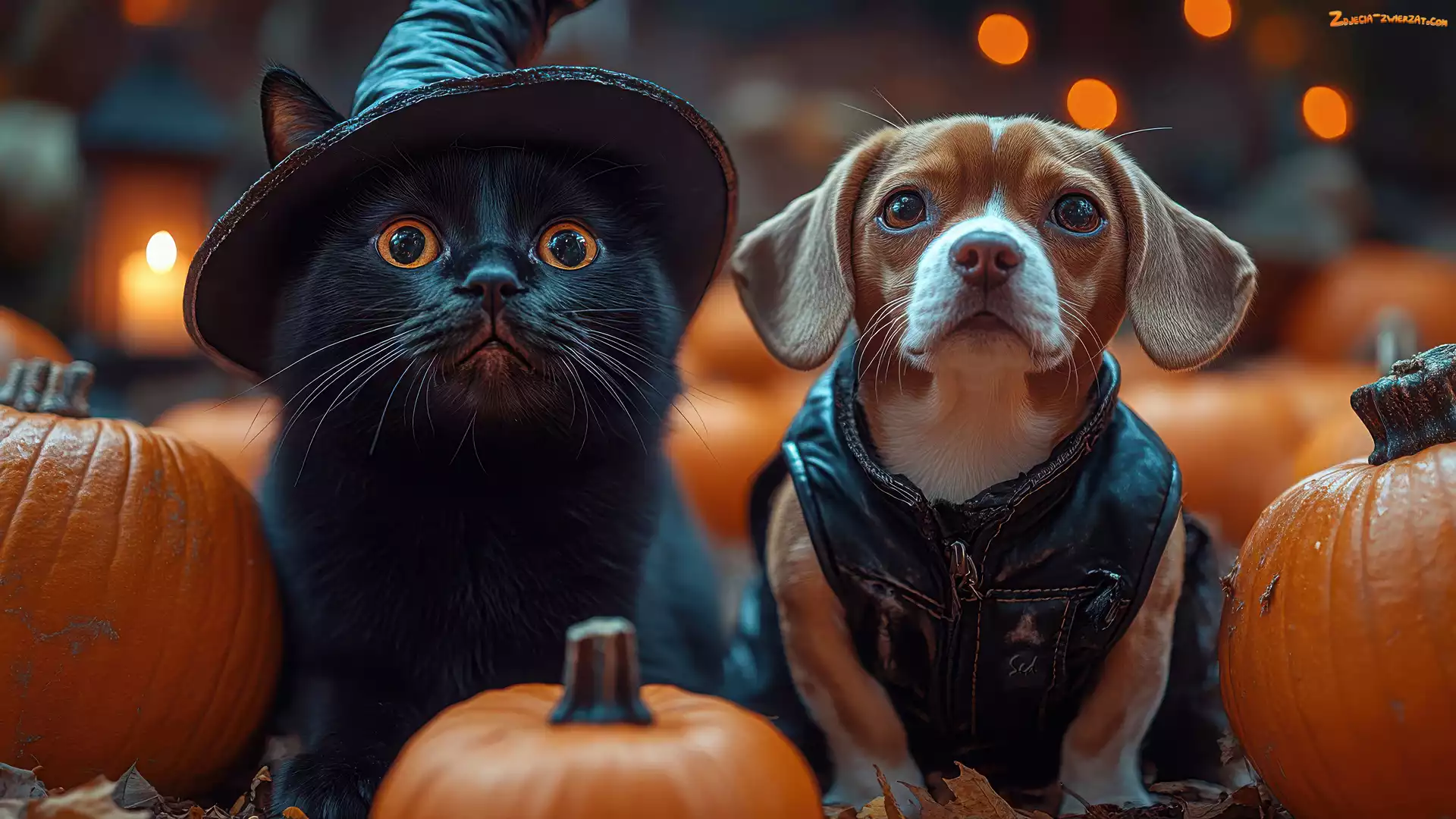 Zdjęcie: Dynie, Kot, Grafika, Pies, Czarny, Kapelusz