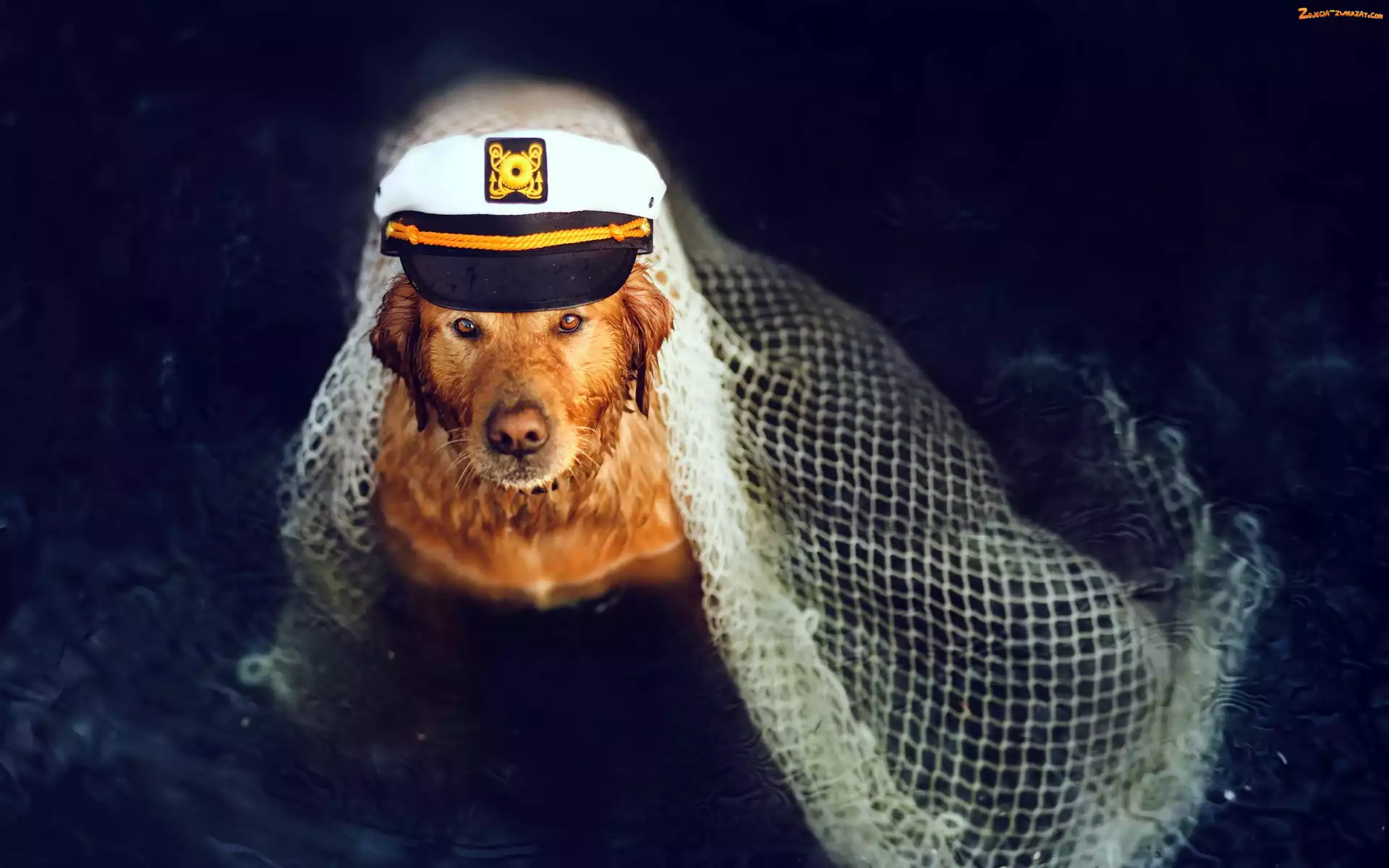 Golden retriever, Kapitan, Pies, Czapka