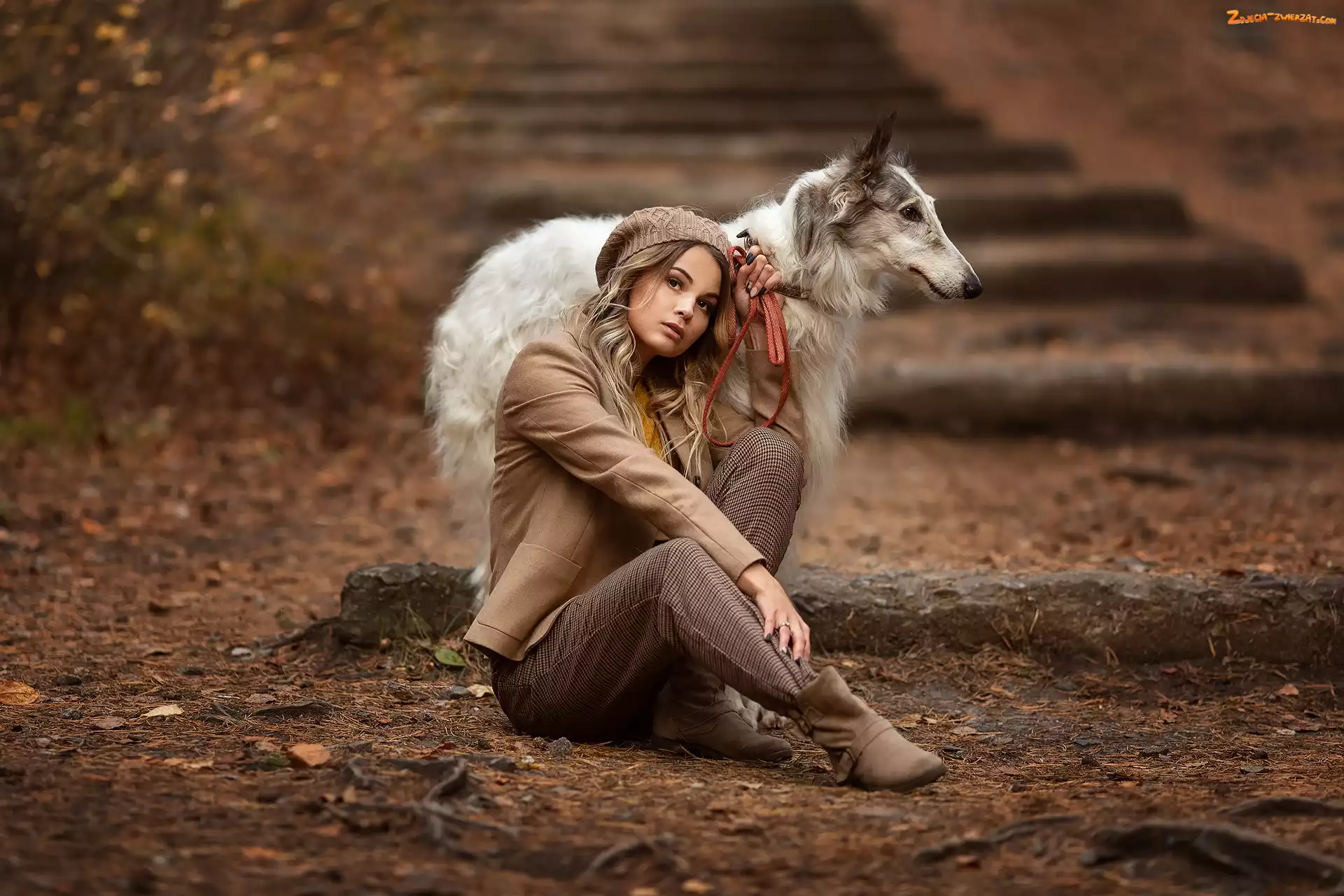 Zdjęcie: Pies, Chart rosyjski, Kobieta, Borzoj