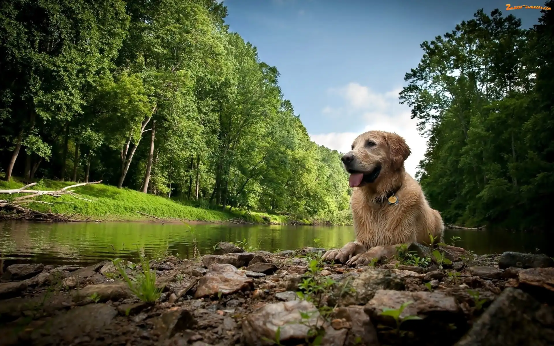 Zdjęcie: Golden Retriever, Las, Pies, Rzeka