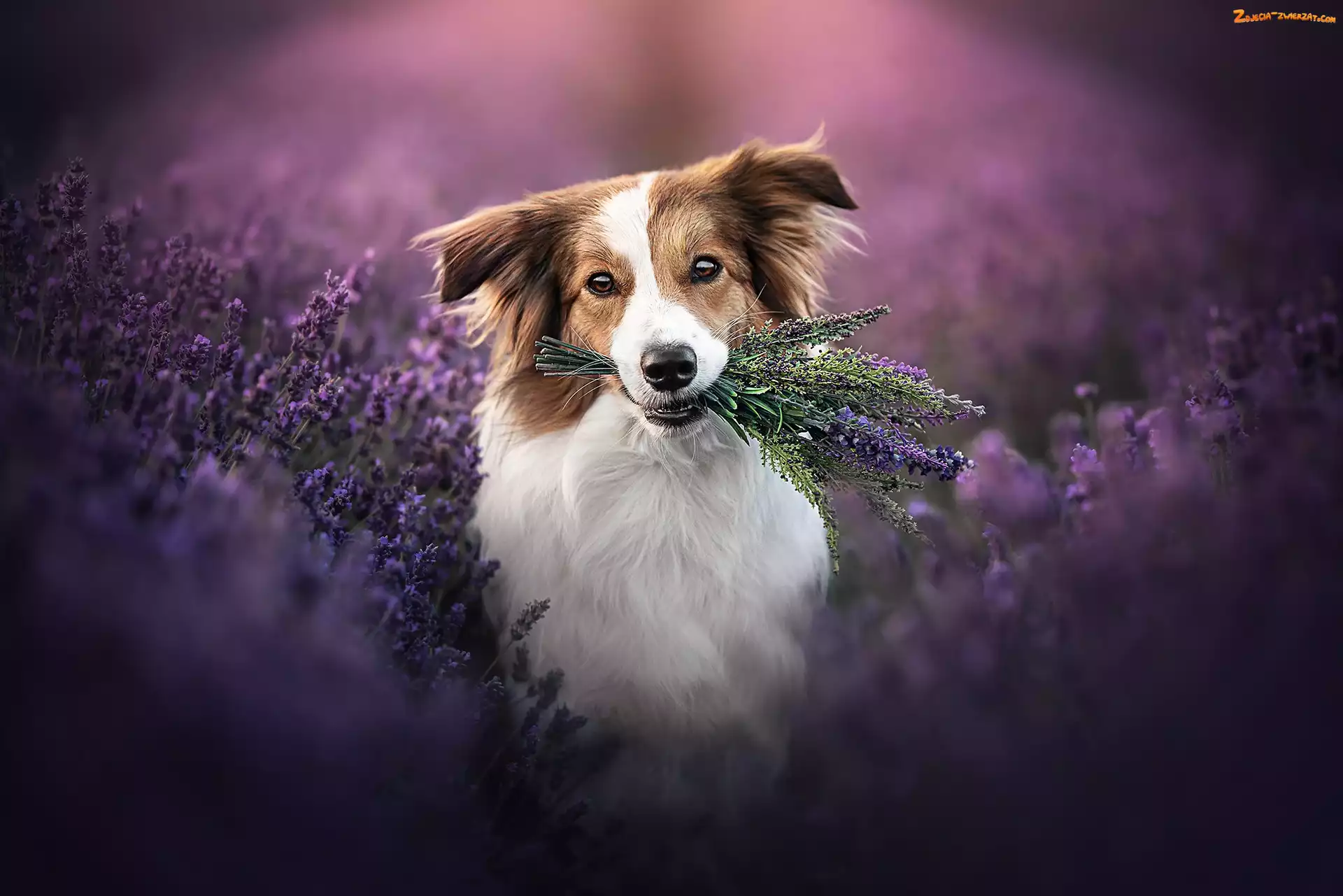 Kwiaty, Pies, Lawenda, Border collie