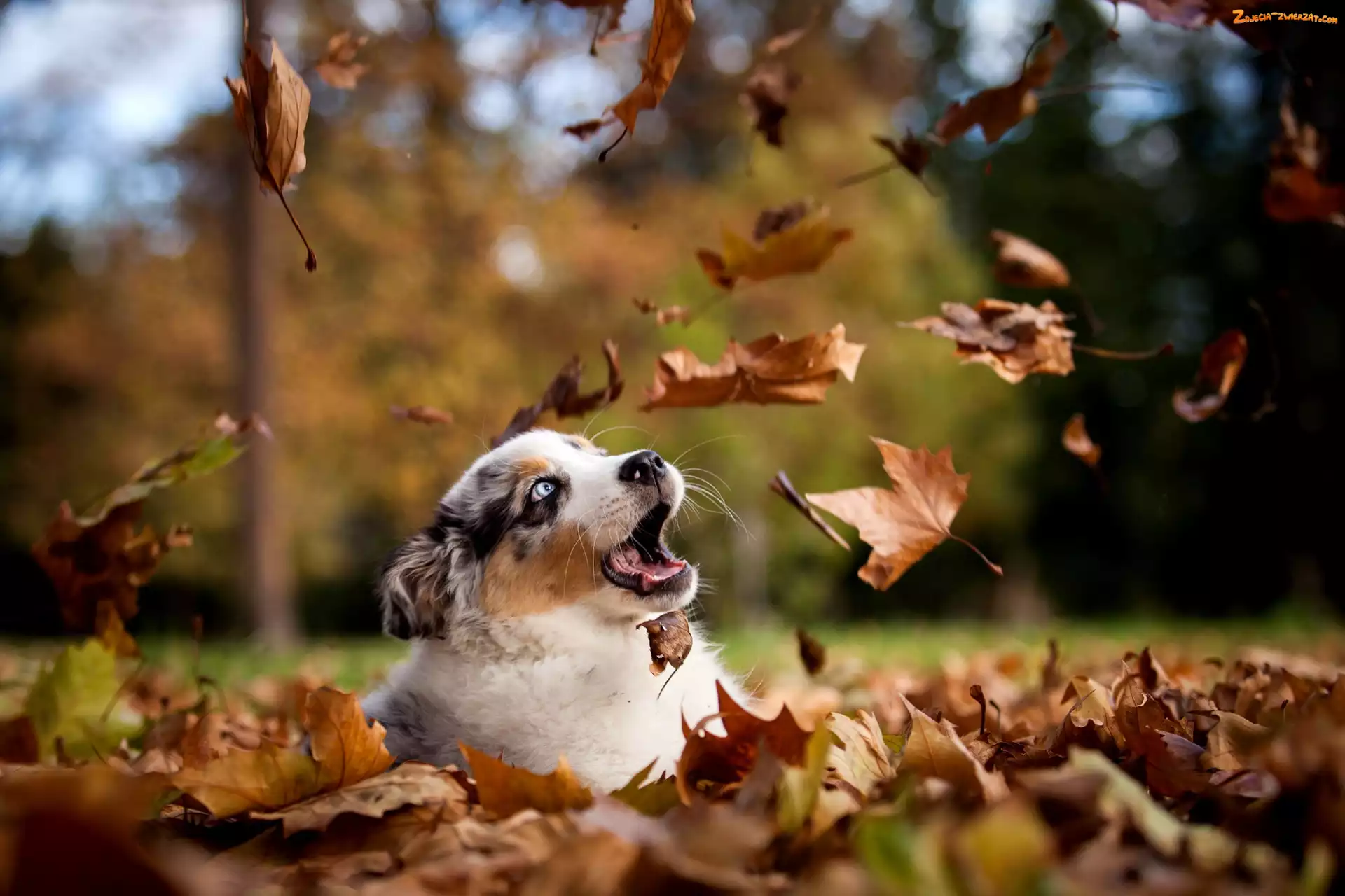 Zdjęcie: Liście, Owczarek australijski-australian shepherd