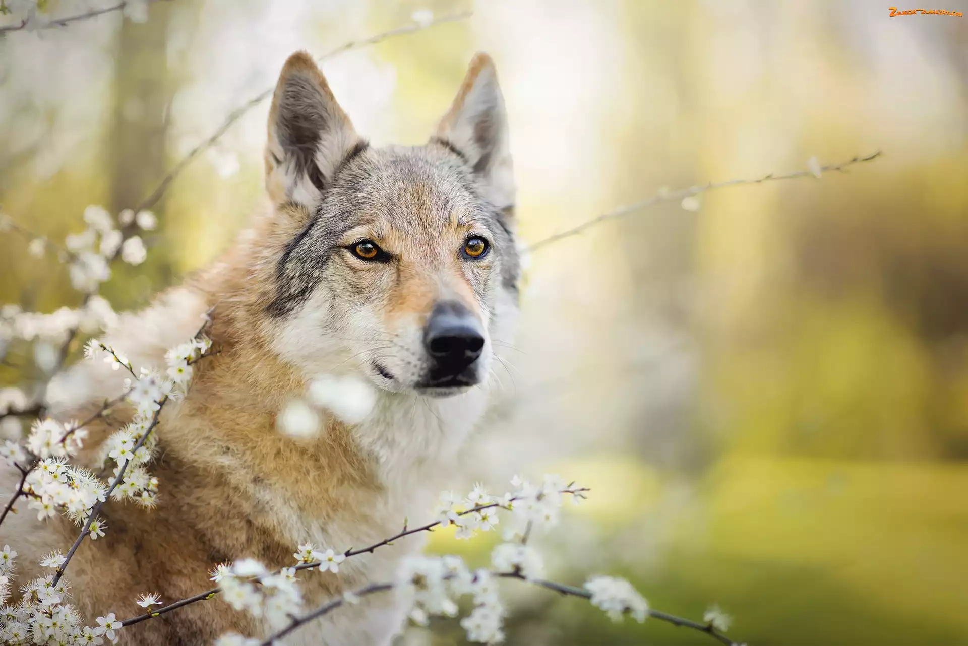 Zdjęcie: Mordka, Pies, Tło, Rozmyte, Wilczak czechosłowacki, Kwiaty