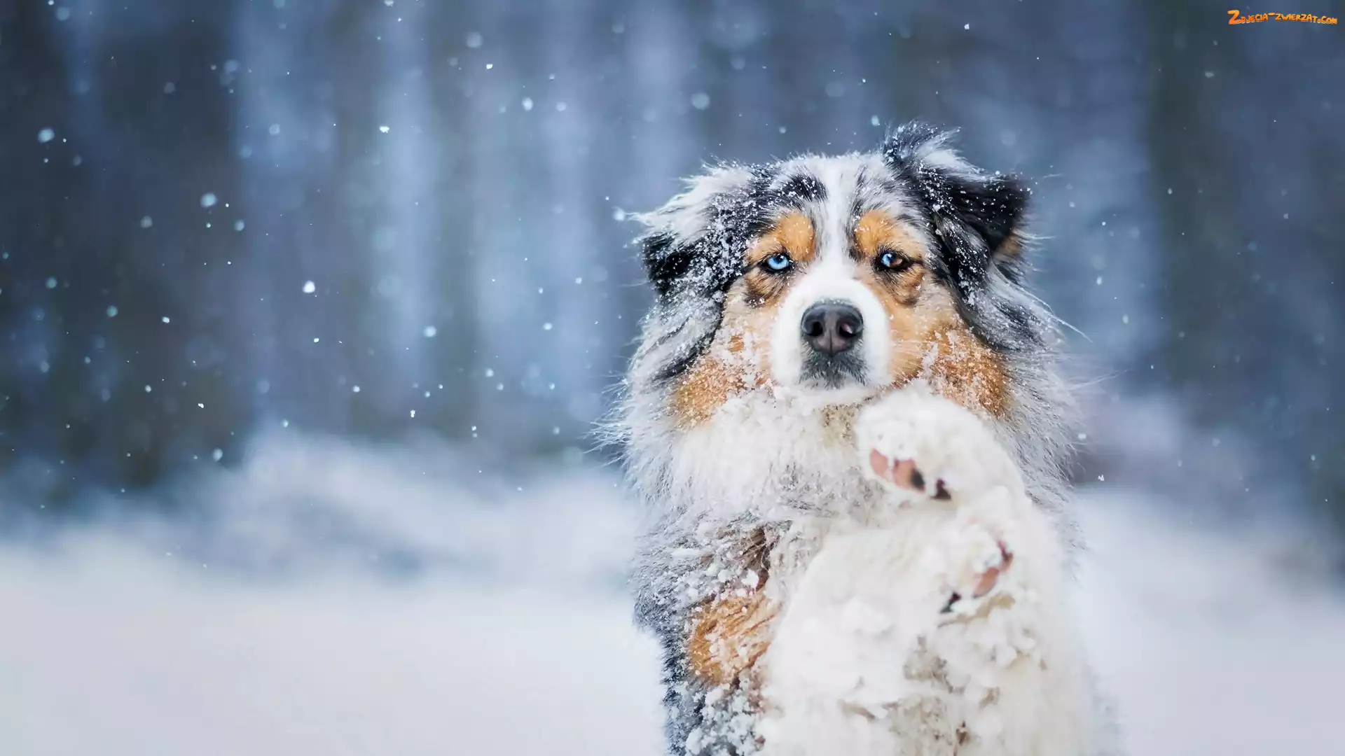 Zima, Owczarek australijski, Pies, Śnieg